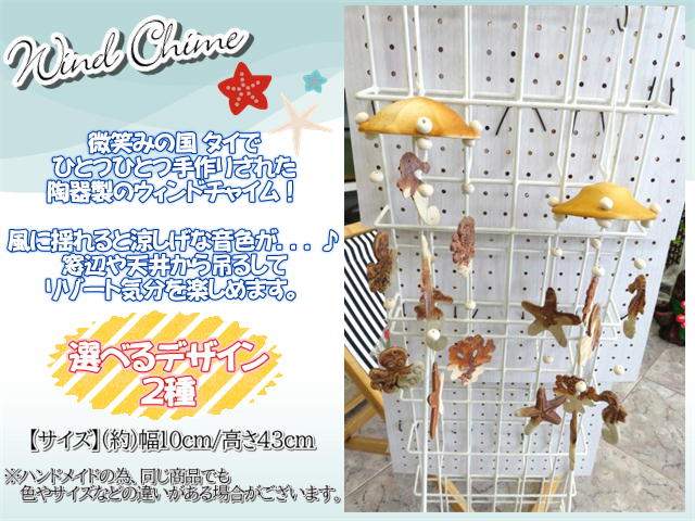 陶器 焼き物 オーナメント アレンジ デコレーション 10×43cm 2種 風鈴 ウィンドチャイム 吊るす インテリア おしゃれ リゾート マリン 天然 手作り
