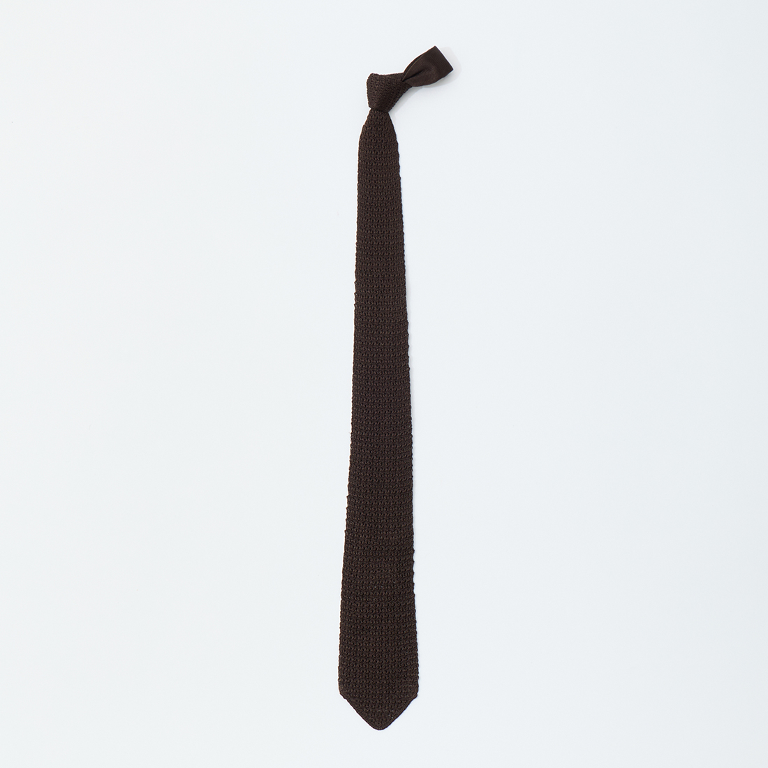 アイビー、トラッドスタイル好きな方には勿論のこと、普段使いとしても取り入れて頂き易いカジュアルなニットタイ。紺ブレとの相性は勿論のこと、時々気分を変えたい時など様々な用途、スタイリングにも使って頂き易いデザイン。上品かつ春夏らしい清涼感漂う生地感も良い雰囲気。シンプルなスタイリングになりがちな春夏の時期こそオススメしたくなるアイテムですね。