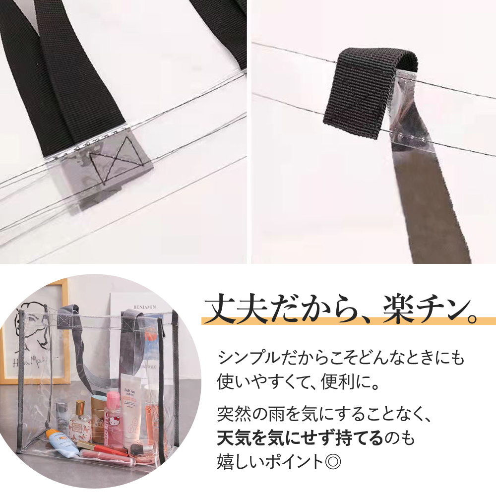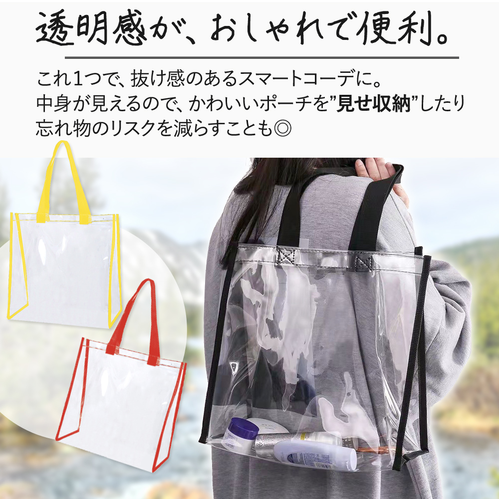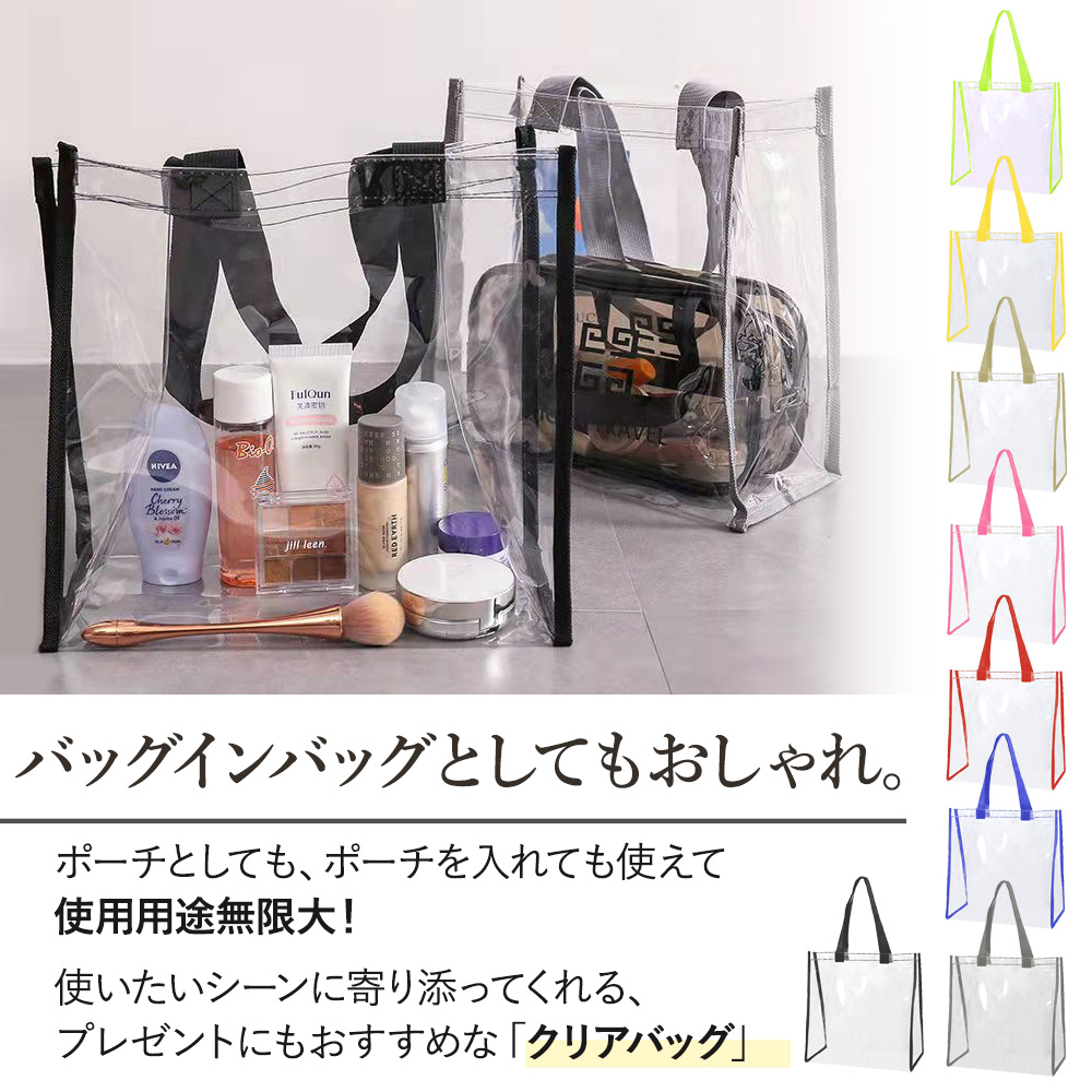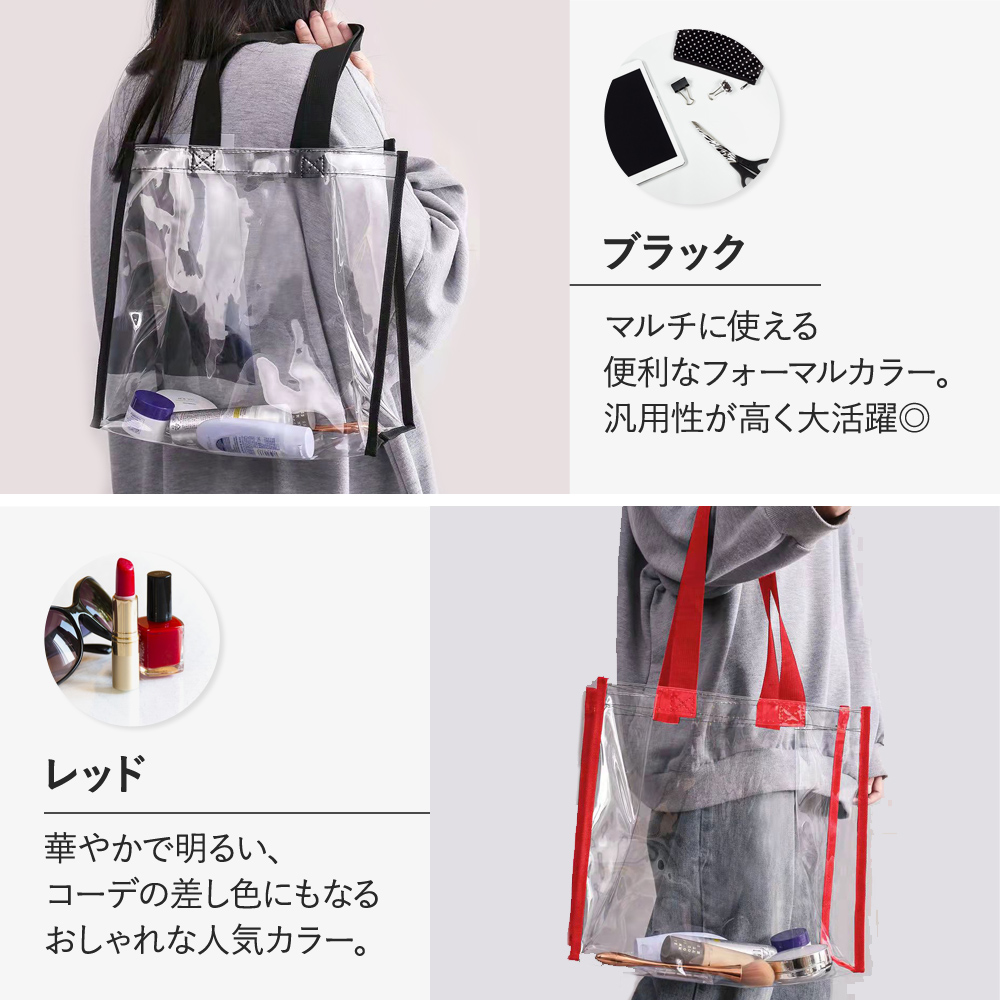 | ※こちらは【訳あり品】となります。 使用上の問題は特にございませんが、縫製のほつれや小さな汚れが見られる場合がございます。ご了承の上でお買い求め頂くようお願い致します。 海やプール、アウトドア。 楽しいお出かけを、もっと快適にできる 今大人気のクリアバッグ! 中身が見えるので、かわいいポーチを『見せ収納』したり 忘れ物のリスクを減らすことも◎ 手で持ったり肩にかけたりしやすい、ちょうどいい持ち手サイズ。 A4サイズのノートやパソコン、タブレットも余裕で入る収納力は日常使いにも最適 マチ付きなので、厚みがあるお弁当等もOK。 ビニール素材なので、濡れても大丈夫 海やプールなどのアウトドアはもちろん、濡れた着替えや化粧水類を入れておくにもおすすめです 『見せる収納』ができるので、ライブやイベント時に推し活としても大活躍です 会社企業に出入りする人の手荷物検査および会社情報漏洩防止、個人情報漏洩防止にも役立ちます 痛バッグのベースとしてもGOOD! |