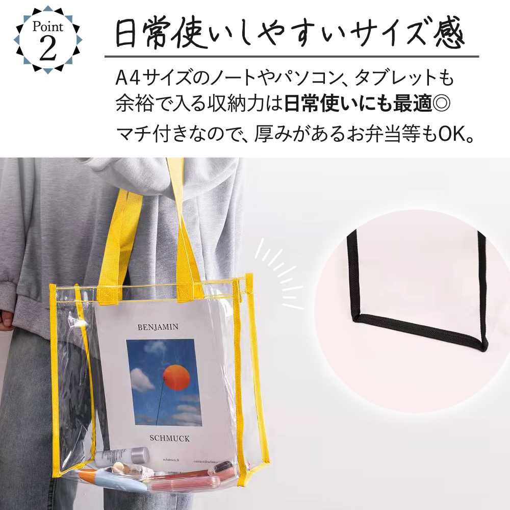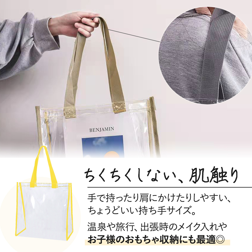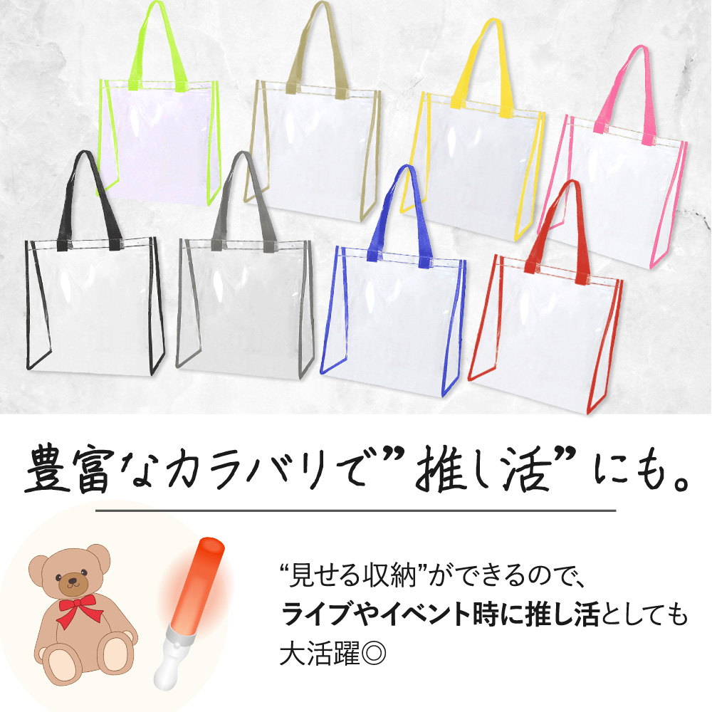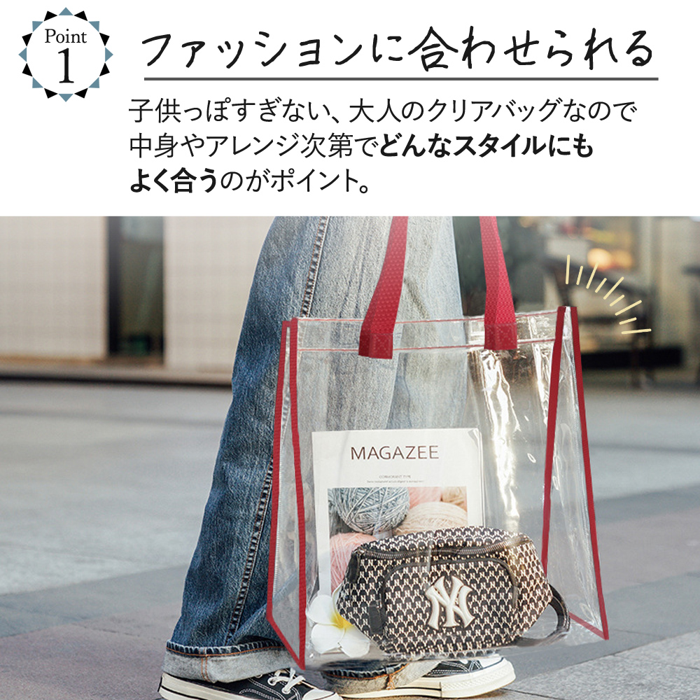 | ※こちらは【訳あり品】となります。 使用上の問題は特にございませんが、縫製のほつれや小さな汚れが見られる場合がございます。ご了承の上でお買い求め頂くようお願い致します。 海やプール、アウトドア。 楽しいお出かけを、もっと快適にできる 今大人気のクリアバッグ! 中身が見えるので、かわいいポーチを『見せ収納』したり 忘れ物のリスクを減らすことも◎ 手で持ったり肩にかけたりしやすい、ちょうどいい持ち手サイズ。 A4サイズのノートやパソコン、タブレットも余裕で入る収納力は日常使いにも最適 マチ付きなので、厚みがあるお弁当等もOK。 ビニール素材なので、濡れても大丈夫 海やプールなどのアウトドアはもちろん、濡れた着替えや化粧水類を入れておくにもおすすめです 『見せる収納』ができるので、ライブやイベント時に推し活としても大活躍です 会社企業に出入りする人の手荷物検査および会社情報漏洩防止、個人情報漏洩防止にも役立ちます 痛バッグのベースとしてもGOOD! |