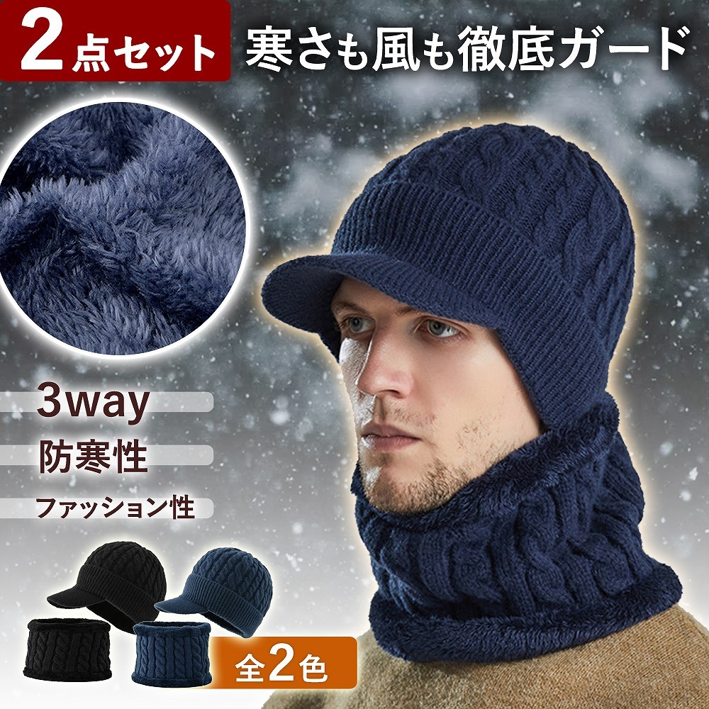 | 主な仕様 | ・ニットキャップ 頭囲:約50cm ツバ部分:約6cm 平置きキャップ部分:約25cm ・ネックウォーマー 約25cm×約18cm ※伸縮性のある素材です。 |