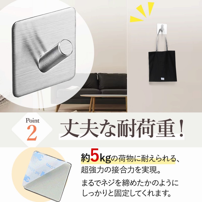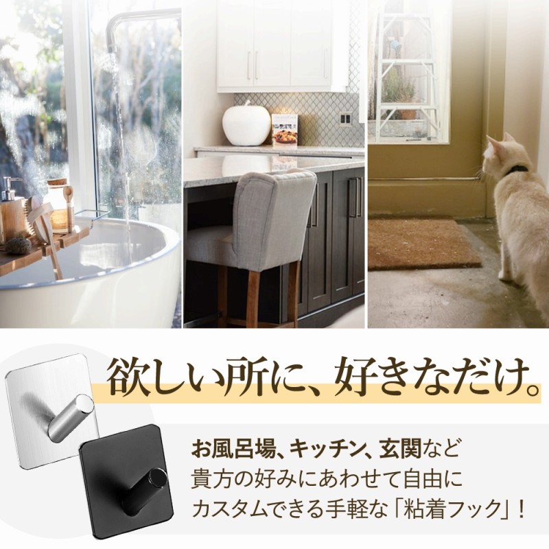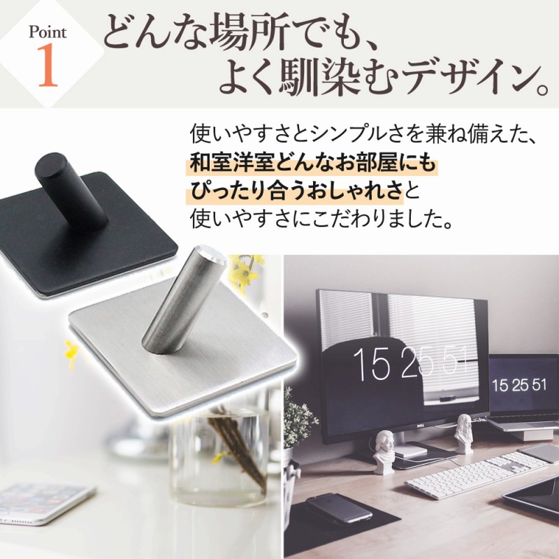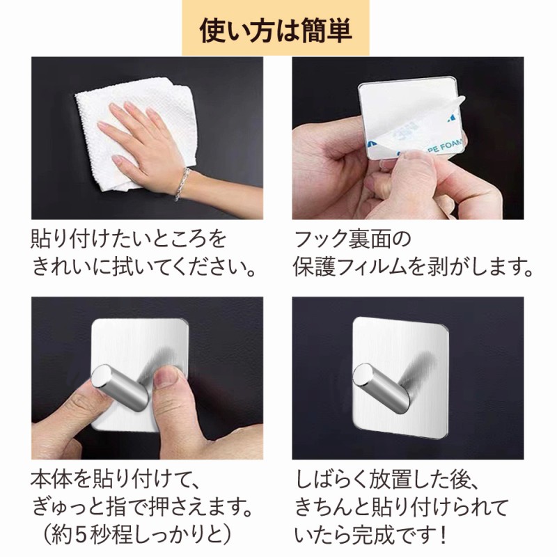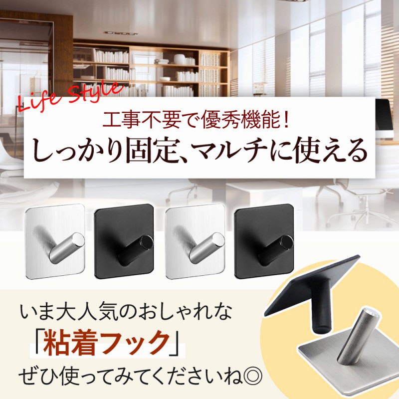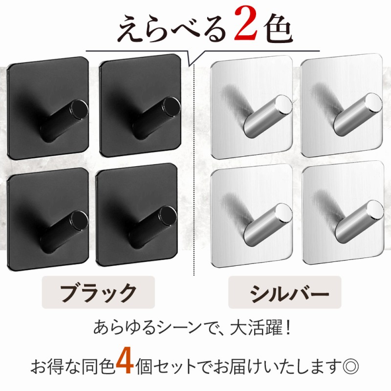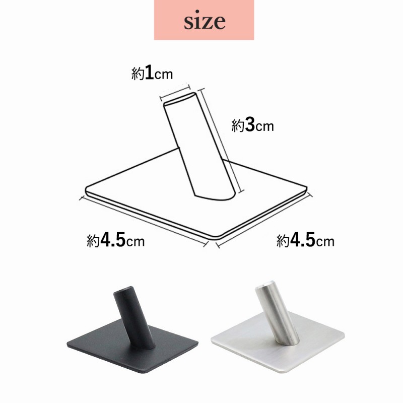 | 【サイズ】 約4.5cm×約4.5cm 厚み:約1cm フック部分:約3cm 【カラー】 ブラック、シルバー 【仕様】 ブラック×2個 シルバー×2個 合計4個セットでお届け 【素材】 ステンレス |
