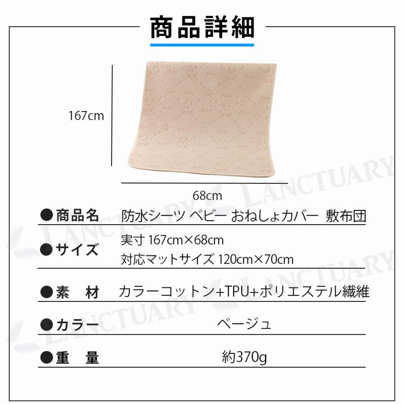 | 商品名:防水シーツ ベビー おねしょカバー 敷布団 サイズ:実寸 167cm×68cm 対応マットサイズ:120cm×70cm 種類:くま ぞう くじら 素材:カラーコットン+TPU+ポリエステル繊維 重量:370g |