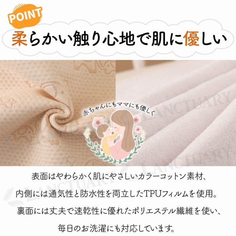 | 防水シートお持ちですか?トイトレ中のお子様はもちろん、用途いろいろの防水シート。優しいデザインのイラストが可愛いおねしょカバーが登場しました! ・しっかり防水 シートは4層構造となっており漏れの心配はなし◎しっかり防水してくれます。 ・触り心地抜群で肌に優しい 表面はやわらかく肌にやさしいカラーコットン素材、内側には通気性と防水性を両立したTPUフィルムを使用。 裏面には丈夫で速乾性に優れたポリエステル繊維を使い、毎日のお洗濯にも対応しています。 ・かわいいイラスト ぞうさん、くまさん、くじらさんと温かみのあるイラストが可愛らしい。 ・通気性抜群 トイトレ中は何度も漏らして洗濯が必要に。通気性、速乾性に優れすぐ乾くので安心です。洗濯機での丸洗いOKです。2枚使いもおすすめ◎ ・型崩れなし 何度洗濯しても変形しないしっかり生地。毛玉にもなりにくい。 ・滑り止め機能付き 裏側は滑り止めタオル布になっており滑り止め耐摩擦性。肌に優しい。 また角丸縁で角が丸くお子様に優しいデザインとなっています。 ・こんな使い方も ペットや介護、破水対策にまで。トイトレ中やお子様の体調不良時はもちろんですが、その他いろいろ使い方があり機能的です。 子育て世代のママの味方。しっかり防水対策し、掃除の手間を減らしましょう。ぜひこの機会に一度お試しください! |