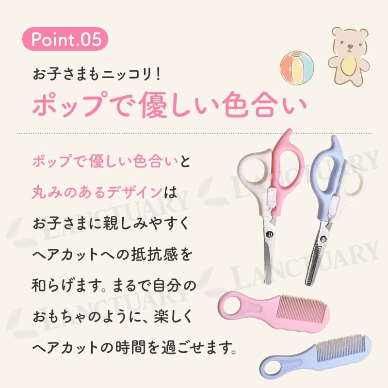 | 商品名: ベビーヘアカットセット セット内容: ストレートはさみ、すきバサミ、コーム、専用ケース 材質: ステンレス鋼、ポリプロピレン サイズ: すきバサミ:全長15.5cm/刃渡り4.5cm/幅6.5cm、ストレートはさみ:全長15.5cm/刃渡り4.7cm/幅6.5cm、コーム:全長12.3cm/幅3.5cm、収納ケース:17.5cm×8.5cm 重量: すきバサミ:34g、ストレートはさみ:35.5g、コーム:7.3g カラー: ブルー、ピンク |