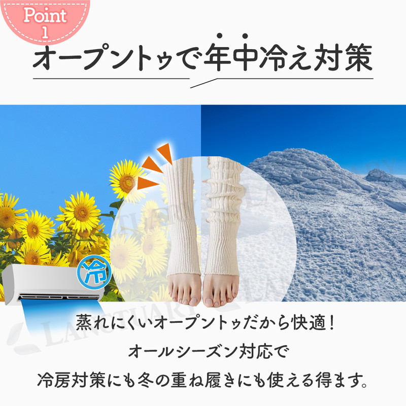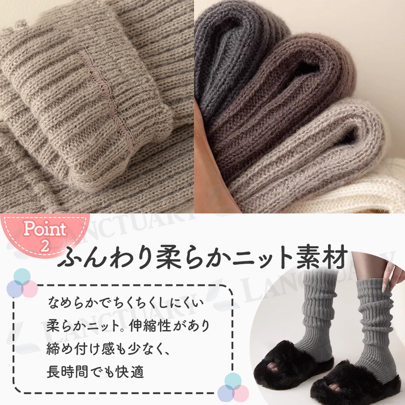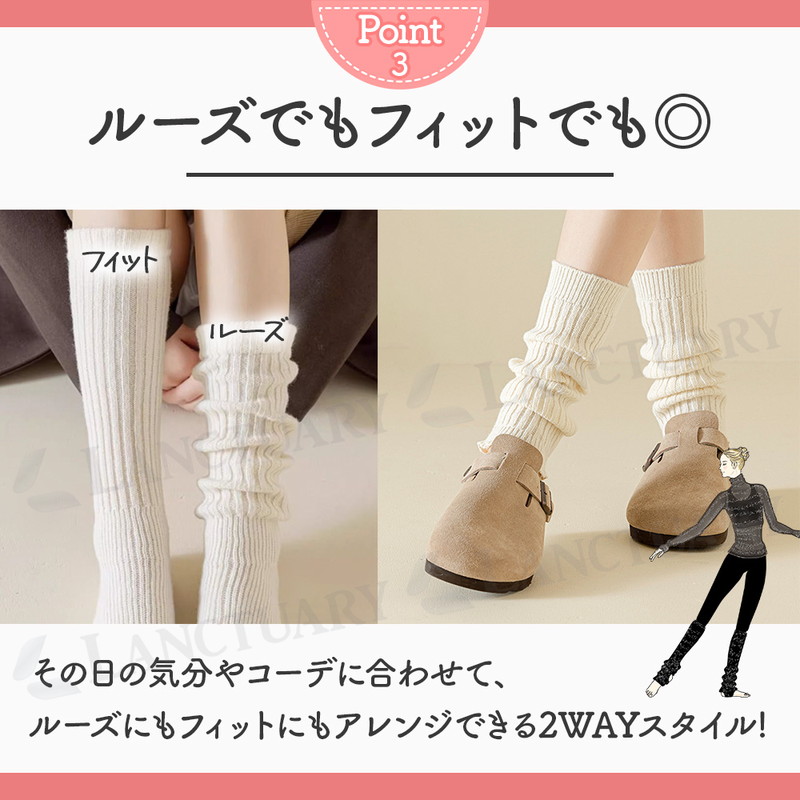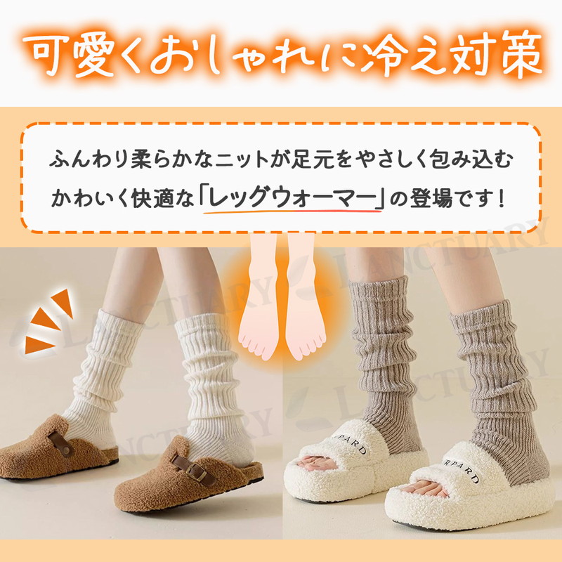 | 足元の冷え対策に!冬場の寒さはもちろん、夏場のエアコン対策にも!年中使えるおしゃれでかわいいレッグウォーマーが登場しました! 柔らかでなめらかなな触り心地で足元をすっぽりカバーし体温を逃さずキープ◎ 冷えやすい足首からかかとまでしっかりウォームアップしてくれます。 寒すぎる日などはお持ちの靴下と合わせて2重で履いてもOK。 オープントゥ仕様で余計な熱は逃し、蒸れにくく快適で長時間のご使用も安心です。 伸縮性のあるリブ編みが足にフィットしずれにくい仕様となっております。 履き方は2通り。しっかり伸ばして履いたり、ルーズにずらして履いたりできる2way仕様。その日の気分やスタイルに合わせて履き方いろいろ。 いつものデイリーコーデにも、ルームウェアや就寝時にも。 いつでもどこでも足元暖か◎ また美脚効果もあり、履くだけでスタイルアップできる優秀アイテムです。 おしゃれしながら足元を暖め健康まで気遣える◎ モノトーンセット、ナチュラルセットと3色2セットからお選びください。 どんなスタイルにも合わせられるベーシックなカラーを取り揃えました。 ちょっとしたギフトにも喜ばれること間違いなし◎ この機会にぜひお試しください! |