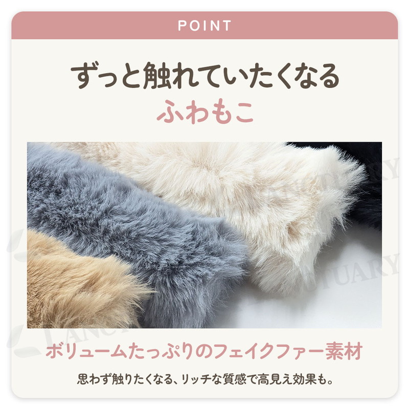 | お手持ちのバッグのハンドルに取り付けるだけで、冬らしい季節感と温かみをプラスできるファーハンドルカバーです。ふわふわとした濃密なエコファー素材を使用しており、思わず触れたくなるような心地よい肌触りが特徴です。 見た目のおしゃれさだけでなく、実用性にもこだわりました。重い荷物を持った際にハンドルが手や肩に食い込む痛みを、厚みのあるクッションが優しく軽減します。金属チェーンや細い革紐のバッグなど、長時間持っていると辛くなるバッグも快適にお使いいただけます。 最大の特徴は、内側に施された幅広の滑り止めゴムバンドです。一般的なカバーでありがちな、使用中にくるくると回ってしまうストレスを解消し、常に綺麗な位置をキープします。 装着はファスナー式を採用しており、わずか10秒ほどで簡単に取り付けが可能です。ファスナー部分は毛並みに隠れるように設計されているため、閉じると金具が見えなくなり、バッグのデザインを損ないません。 汚れてきたハンドルの目隠しや、大切なバッグの摩耗防止としても役立ちます。その日の気分やコーディネートに合わせてカラーを変えて楽しむのもおすすめです。 |