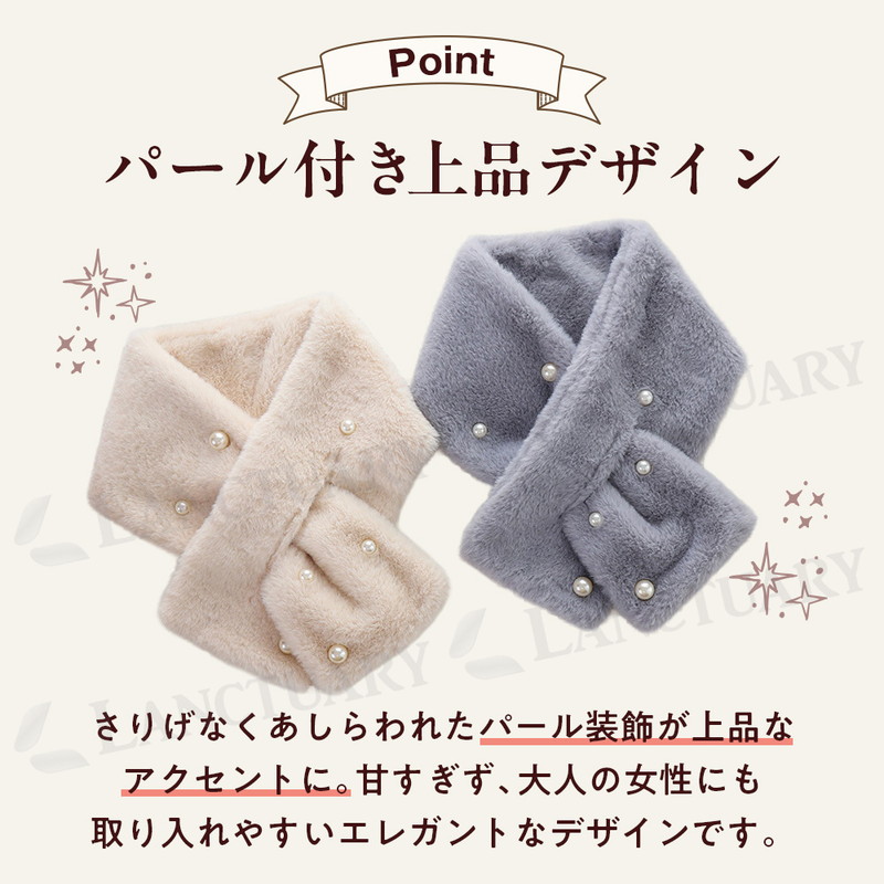 | #商品詳細 商品名:パール付き ファーマフラー サイズ:80cm×10cm 素材:ポリエステル カラー/種類:ホワイト/グレー/ブラック/ベージュ 重量:70g 販売方法:4色のカラーと4つのサイズからお選びいただけます。 備考:パール大3個(1.5cm)小5個(1cm)計8個 |