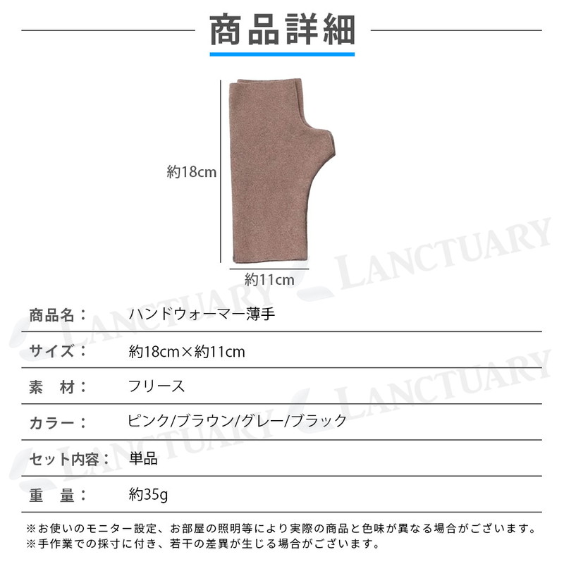 | 商品名:ハンドウォーマー 薄手 サイズ:約18cm×11cm 重量:約35g 素材:フリース セット内容:単品 カラー:ピンク、ブラウン、グレー、ブラック |