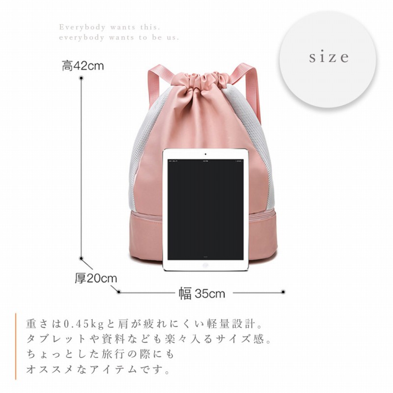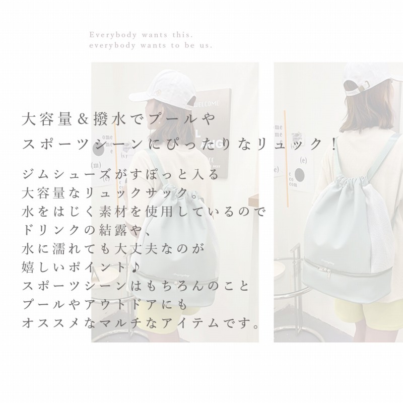 | スポーツシーンはもちろんのこと プールやアウトドアにも オススメなマルチなアイテムです。 重さは0.45kgと肩が疲れにくい軽量設計。 タブレットや資料なども楽々入るサイズ感。 ちょっとした旅行の際にも オススメなアイテムです。 底のジップ部分は、 シューズがすぽっと一足入る収納エリアに。 サンダルや、タオルなども入るので レジャーシーンにぴったり。 頑丈かつ、水を弾く素材を使用しているので アウトドアなどでも大活躍な予感。 雨などで濡れてもさっと拭くだけでOKな イージーケアが嬉しいポイントです♪ 部分的にメッシュが 入っており、 デザイン性と通気性を 兼ね備えた仕上がりに。 肩紐部分は、サイズ調節が 可能なのでお好みの丈感に カスタマイズして頂けます。 使い勝手のいい区分け収納で 荷物も一目瞭然! 内側も撥水仕様なので ドリンクの結露や 濡れたタオルなども 気にせず収納できます♪ その時の気分で手提げにしたり、 持ち方を変えることができます。 ぜひ試してみてください♪ |