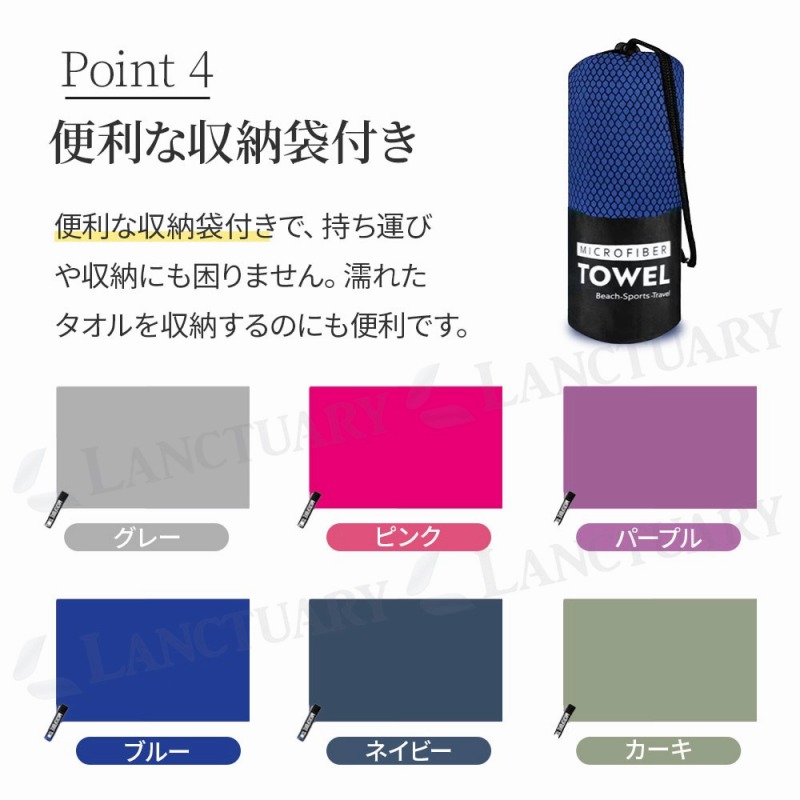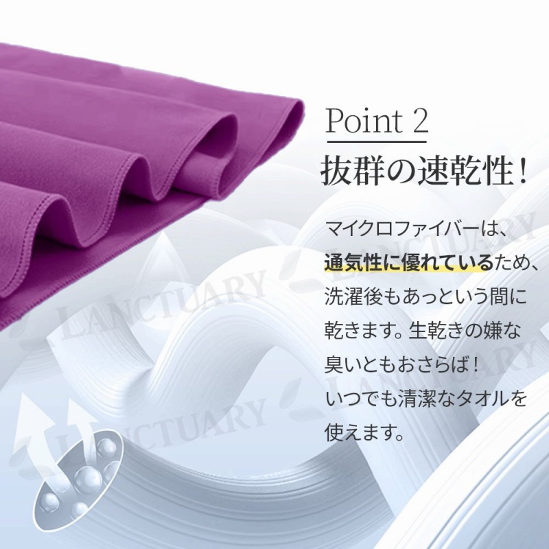 | 毎日のバスタイムを、もっと快適に、もっと楽しくしたいと思いませんか?ボディタオル マイクロファイバー 40×80は、そんなあなたの願いを叶える、高機能なボディタオルです。 マイクロファイバーとは、髪の毛の100分の1ほどの細さの極細繊維のこと。この極細繊維が、驚くほどの吸水力と速乾性を実現しました。綿の約3倍もの吸水量で、お風呂上がりの濡れた体を素早く包み込み、水分をしっかりと吸収。さらに、通気性に優れているため、洗濯後もすぐに乾き、生乾きの不快感を解消します。 ボディタオル マイクロファイバー 40×80は、吸水性と速乾性だけでなく、肌触りにもこだわりました。極細繊維が作り出す、シルクのように滑らかでふわふわの肌触りは、一度使ったら手放せなくなる心地よさ。敏感肌の方や、小さなお子さんにも安心してお使いいただけます。 また、薄くて軽いので、コンパクトに折りたたんで持ち運ぶことも可能。旅行やジム、プールなど、様々なシーンで活躍します。便利な収納袋付きで、濡れたタオルを持ち運ぶ際にも便利です。 カラーは、グレー、ピンク、パープル、ブルー、ネイビー、カーキの6色展開。お好きな色を選んで、毎日のバスタイムをもっと楽しく彩りましょう。 |