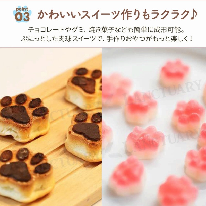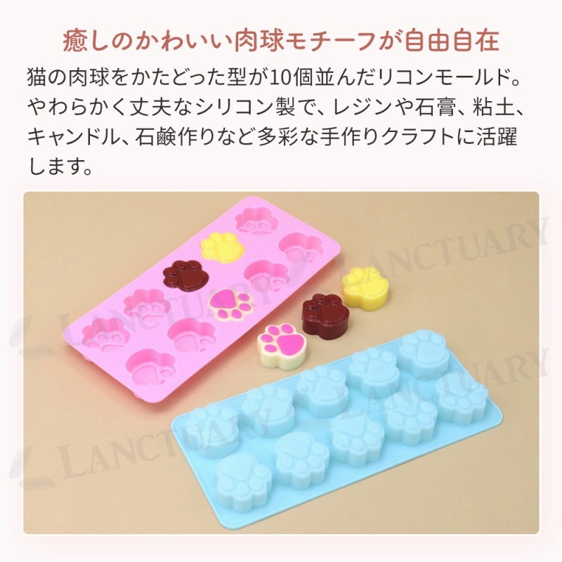 | ハンドメイド・お菓子作りを楽しくかわいく 肉球シリコンモールド 【スイーツ作りやハンドメイドのこんなお悩みありませんか?】 お菓子やレジン作品に、さりげなく可愛いアクセントを加えたい 簡単に肉球モチーフを量産したい 初心者でも失敗しづらい型が欲しい 型から取り出すときに割れてしまうことが多い 【癒しのかわいい肉球モチーフが自由自在】 猫の肉球をかたどった型が10個並んだリコンモールド。やわらかく丈夫なシリコン製で、レジンや石膏、粘土、キャンドル、石鹸作りなど多彩な手作りクラフトに活躍します。 point 1:肉球モチーフをまとめて作れる♪ 一度に10個分の肉球モチーフが成形可能。 時短&効率的な制作にぴったり。 point 2:柔軟&耐久性に優れた素材 高品質シリコン製で、硬化後の型からの取り外しもスムーズ。 繰り返しの使用にも強く、長く愛用できます。 point 3:かわいいスイーツ作りもラクラク♪ チョコレートやグミ、焼き菓子なども簡単に成形可能。 ぷにっとした肉球スイーツで、手作りおやつがもっと楽しく! point 4:封入キーホルダーにも◎ ビーズ入りのシャカシャカやドライフラワーやラメの封入にも◎ 推しカラーでおしゃれにかわいく目立っちゃおう☆ point 5:サッと洗えて清潔 水で簡単に洗い流せて、お手入もれラクラク。 一体成型デザインで変形しにくく、長くお使い頂けます ふんわり可愛い肉球モールド あなたのクラフトに"にゃん"とした癒やしを♪ |