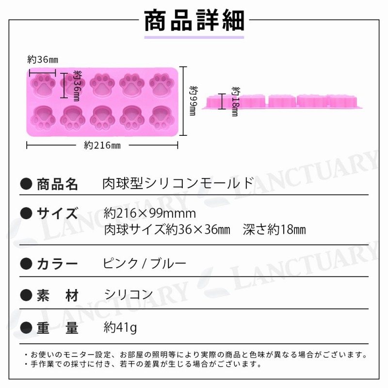 | 商品詳細 商品名:肉球型シリコンモールド サイズ:約216×99mmm 肉球サイズ約36×36mm 深さ約18mm カラー:ピンク / ブルー 素材:シリコン 重量:約41g ・お使いのモニター設定、お部屋の照明等により実際の商品と色味が異なる場合がございます。 ・手作業での採寸に付き、若干の差異が生じる場合がございます。 |