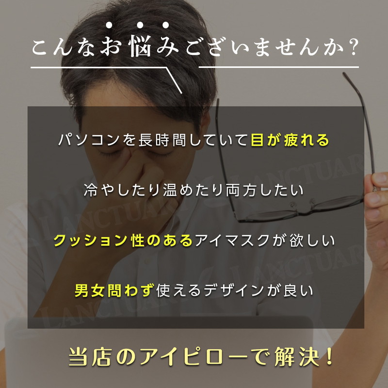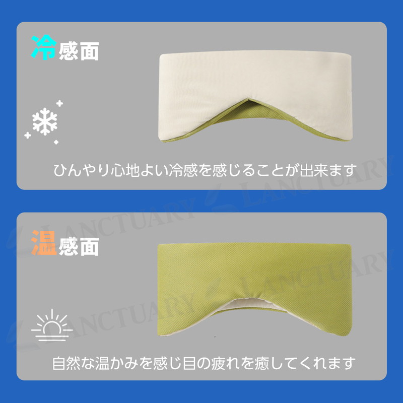| アイピローは、日常生活のストレスや疲れを癒すための理想的なアイテム。 冷感と温感の両面を持ち、使用シーンに応じて使い分けることができます。 男女兼用のデザインで、マジックテープで長さ調整もできるのでフィット感を得られ誰でも気軽に使えるのが特徴になっています。 快適な使用感を実現するための3層構造で外側は柔らかな素材を使用し、肌触りが心地よい。中間層には柔ふんわり綿素材を使用し、目元を優しく包み込みます。 99.9%遮光の効果で、外光を完全にシャットアウト。どんな環境でも、リラックスした状態で安眠をサポートします。 耳栓代わりにもなります消音の中で眠りをサポートします。特に、明るい場所での昼寝や、夜の就寝時にその力を発揮し、目元の疲れを和らげ、心地よい眠りへと誘う。 冷感機能は、特に夏場や疲れがたまっているときに最適。冷却効果で目元をすっきりさせ、リフレッシュしたいときにぴったり。温感機能は、冷えた目元を温めることで、血行を促進し、リラックス効果をもたらす。寒い季節や、目の疲れを感じるときにおすすめ。 持ち運びに便利なサイズ感で、旅行や出張にも最適でバッグに簡単に収まるため、いつでもどこでも手軽にリフレッシュできます。自宅でのリラックスタイムに加え、オフィスや公共交通機関での利用もおススメです。 |