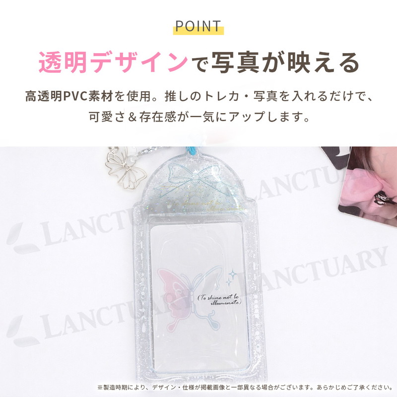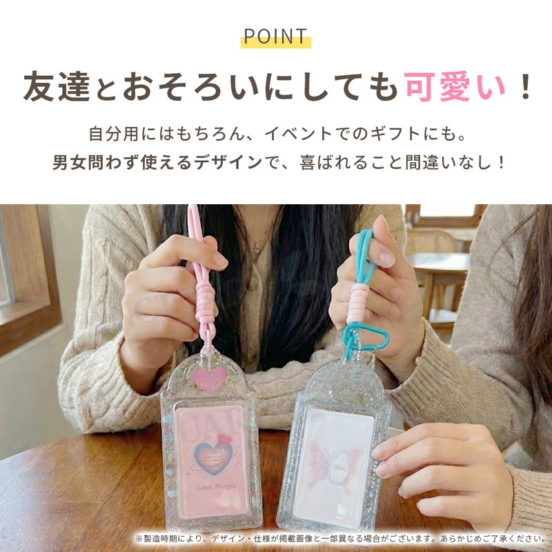 | お気に入りのカードを傷や汚れから守りながら、可愛く持ち運べるカードホルダーです。 透明度の高いPVC素材を使っているので、中に入れた写真やトレカの良さをそのままに、もっとキラキラした印象に見せてくれます。 素材自体に適度な柔らかさと強さがあり、毎日持ち歩いても中身が折れ曲がりにくいのが嬉しいポイントです。 デザインは、大人っぽさもあるリボンタイプと、王道の可愛さが詰まったハートタイプの2種類を揃えました。 どちらも中身がしっかり見える大きな窓がついているので、大好きな推しのビジュアルをいつでも眺めることができます。 付属の編み込みストラップはしっかりした作りで、いつものバッグやスマホ、鍵など、好きなところに簡単に取り付けて楽しめます。 水に強い素材なので、雨の日のお出かけやイベントでも中身が濡れるのを防いでくれます。 通勤や通学で使うパスケースにしたり、ライブ会場でのネームホルダーにしたりと、使い道は人それぞれです。 推し活をさりげなく、でもおしゃれに楽しみたい時にぴったりのアイテムになっています。 シンプルな見た目ながら、持っているだけで気分が上がるようなカラーバリエーションも魅力です。 友達とお揃いにしたり、推しのカラーに合わせて選んだりと、自分なりの使い方を見つけてみてください。 ふとした瞬間に大好きな推しと目が合うだけで、いつもの毎日が少しだけ特別に感じられるはずです。 |