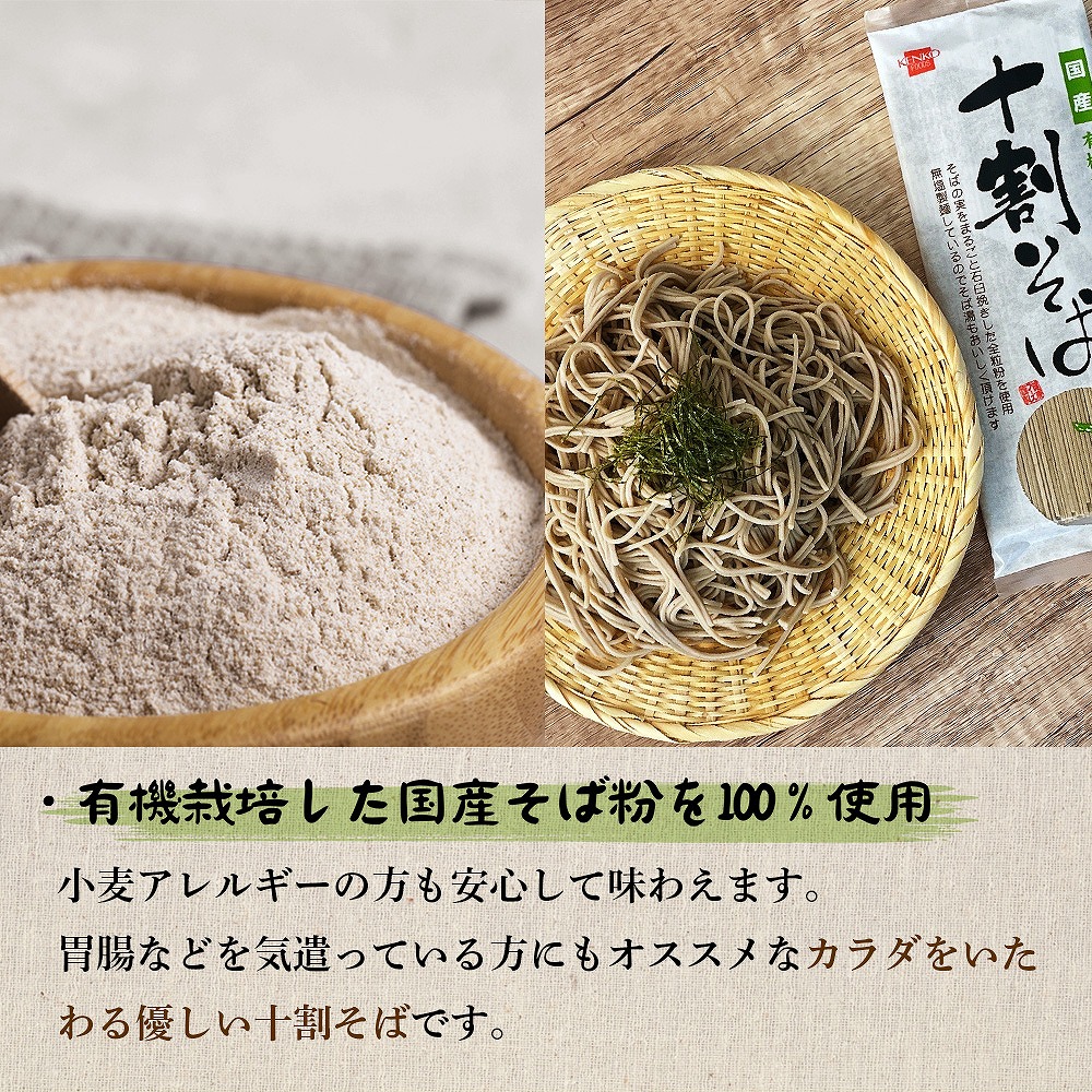 | ■商品情報 国産、有機栽培そば粉を100%使用した、大地の恵みを感じる風味豊かな十割そば。 そばの実をまるごと石臼で挽いた全粒粉で作り上げました。 科学的な農薬や肥料を使わずに育てられたそば粉をふんだんに使用しているので、そば本来の豊かな風味を味わえます。 実は、科学的な肥料や農薬を使って育てている作物は、自然な方法で育てられていた時代の作物よりもビタミンやミネラルなどの栄養価が減少してしまっていると言われています。 有機栽培なら栄養価も高く、科学的な農薬などを気にすることなく安心していただくことができます。 ・小麦粉を使用せず、有機栽培した国産そば粉を100%使用しているので、グルテンフリーで安心。小麦アレルギーの方も安心して味わえます。また、胃腸を気遣っている方にもオススメなカラダをいたわる優しい十割そばです。 ・無塩製麺しているため、素朴で美味しいそば本来の味わいが楽しめるそば湯もいただけます。 温かいままでも、冷やしても、どちらでも美味しくいただけます。 ■発売、製造、輸入又は販売元 健康フーズ株式会社 |