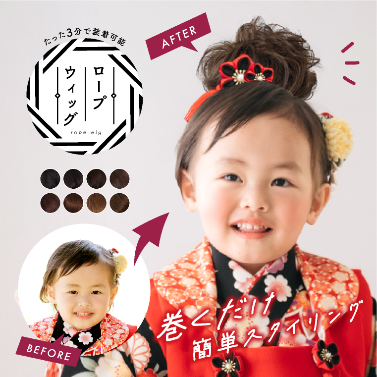ロープウィッグ つけ毛 子供用 ワンタッチ エクステ 七五三 和装 ウィッグ 爆買