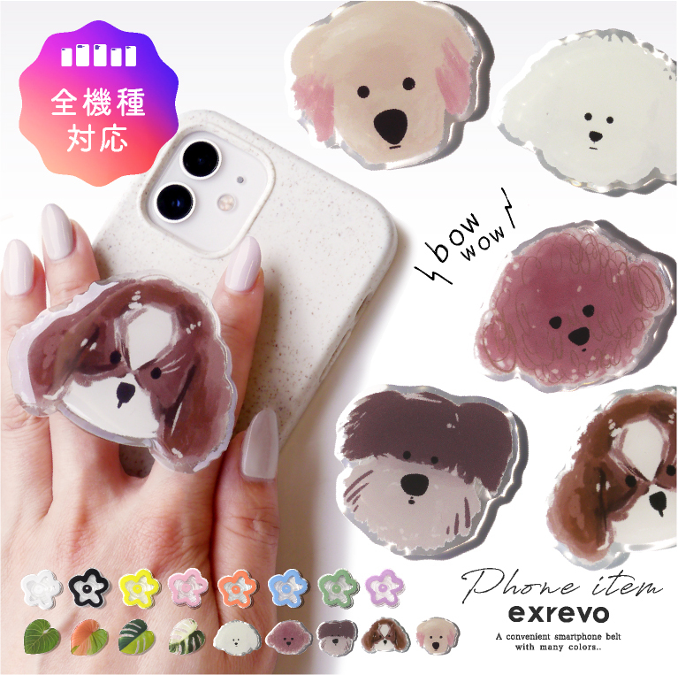 スマホグリップ グリップトック 韓国 iphone スマホ グリップ 透明 いぬ 犬 トイプー キャバリア シュナウザー わんこ 花 落下防止 ポップアップ 全機種対応