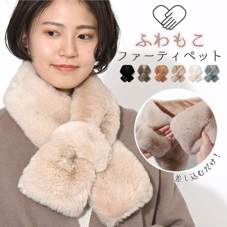 ファー ティペット マフラー 差し込み レディース 冬 エコファー リボン ファーマフラー