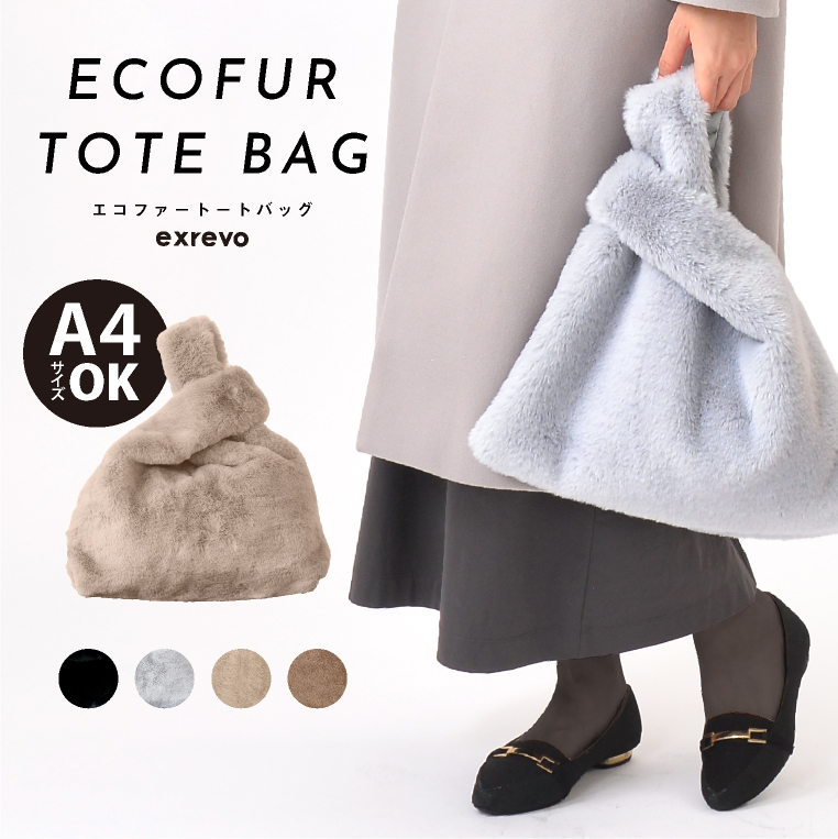 ふんわり柔らかなエコファーを使用した暖かみのあるファートートバッグ。