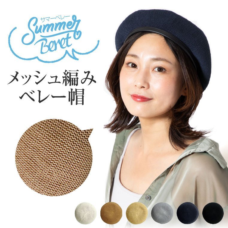 パイピングがおしゃれなサマーベレー帽。