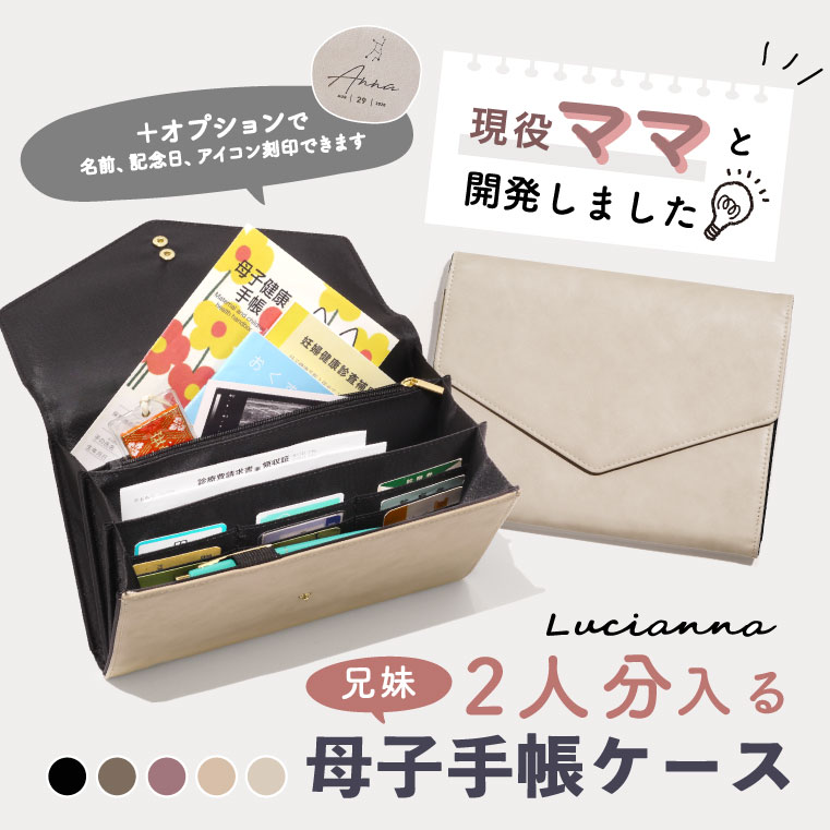 商品名:現役ママと開発した兄妹2人分入る母子手帳ケース----