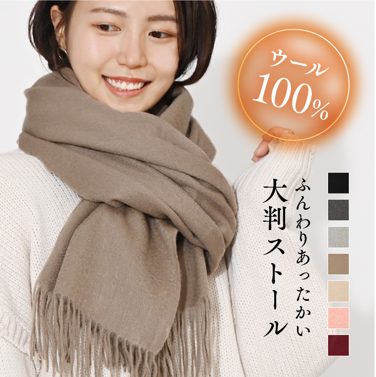 ウール100%大判無地ストール。