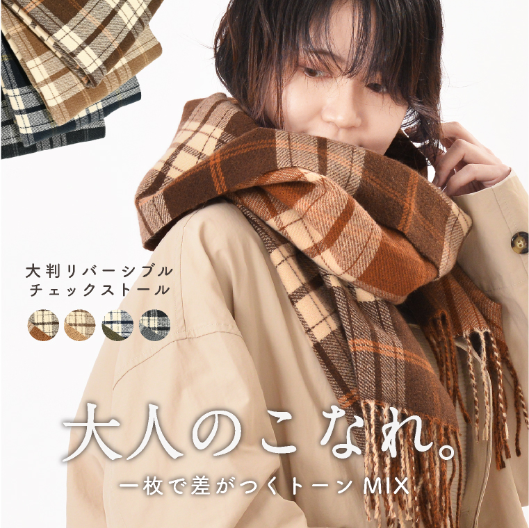 「大判チェックストール(リバーシブル)」