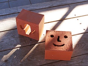 茶褐色のレンガにスマイル・サボテンのモチーフがくり抜かれた、かわいいレンガ。