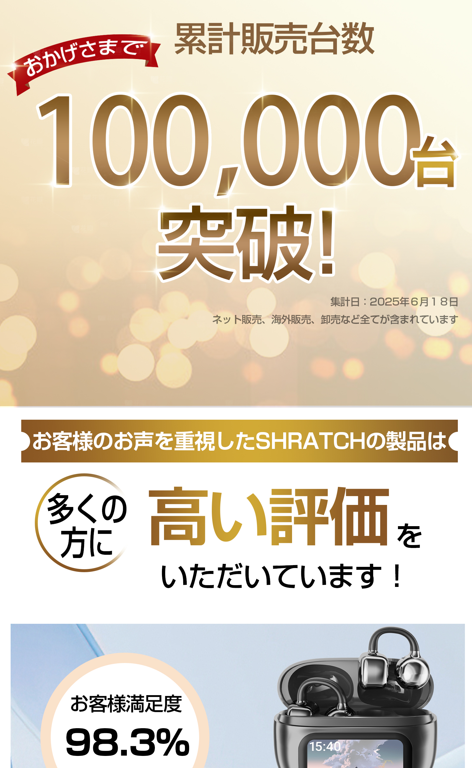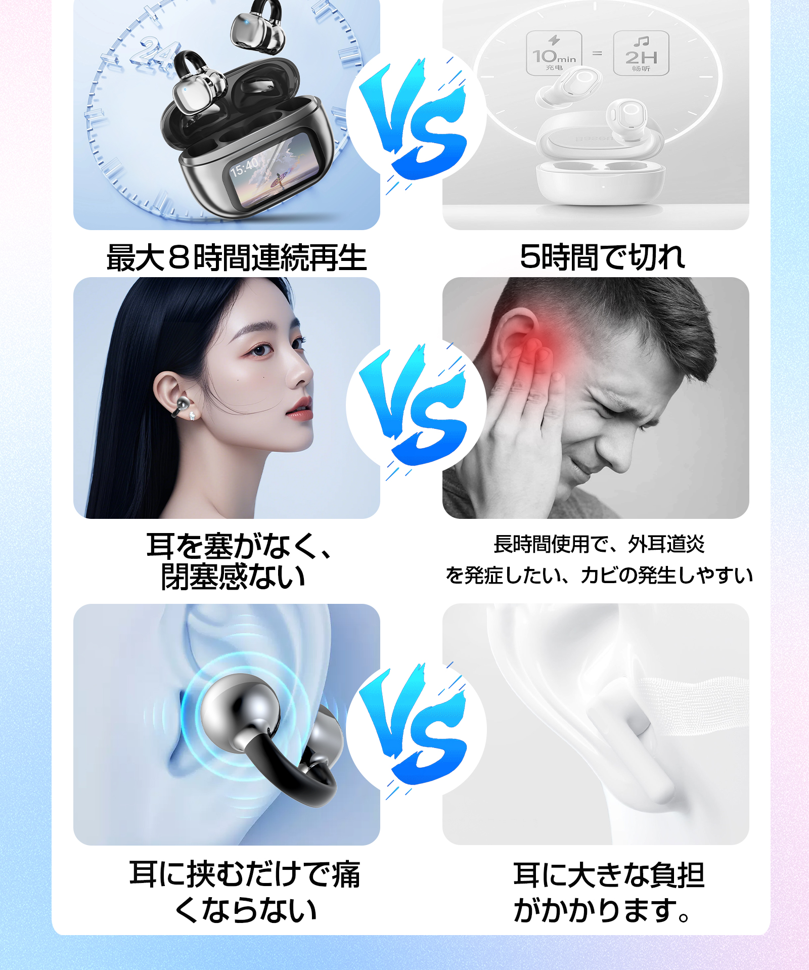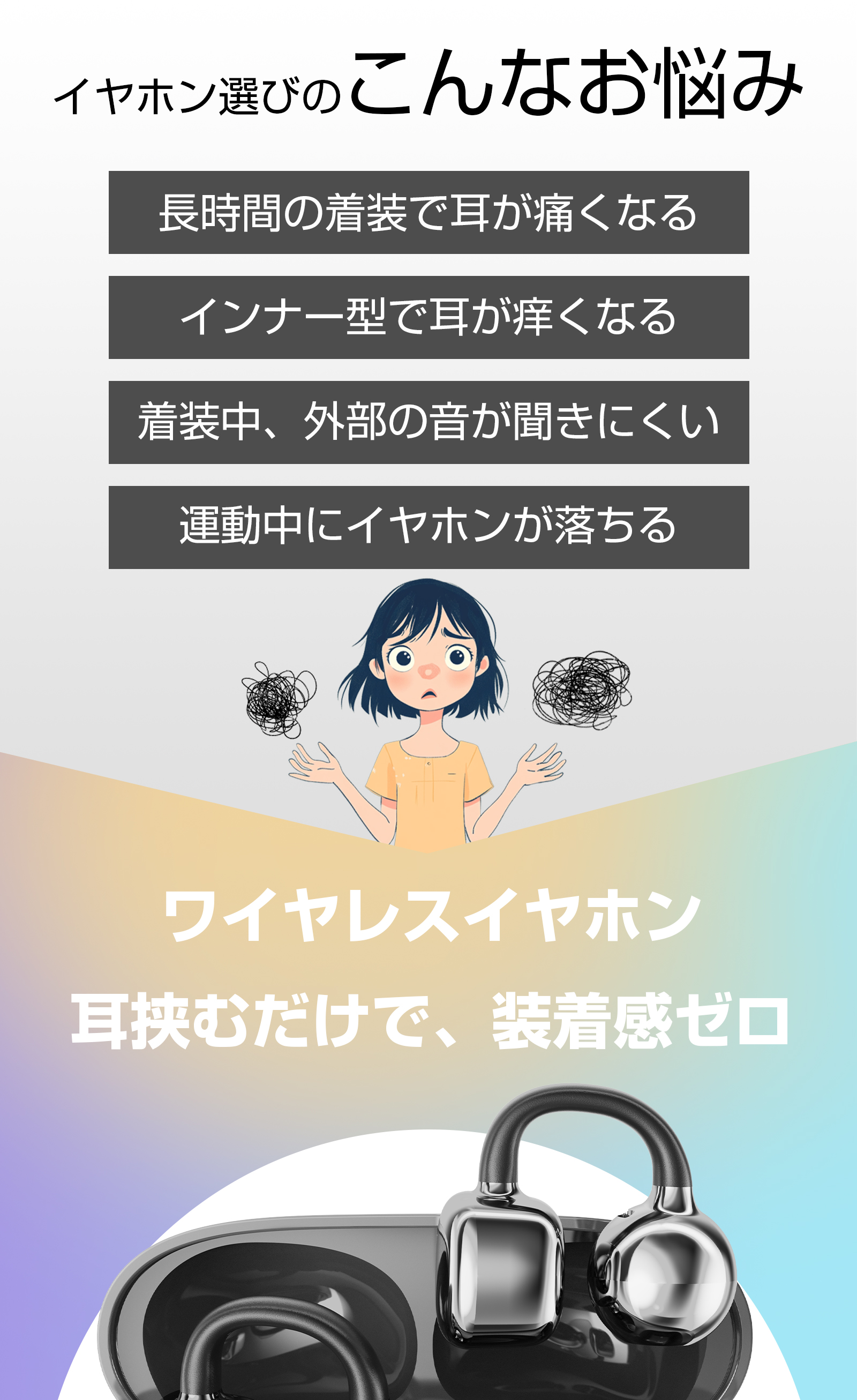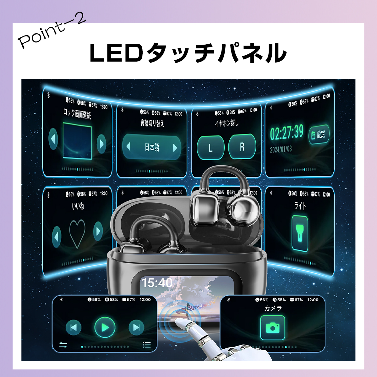 ワイヤレスイヤホン イヤーカフ イヤホン bluetooth 骨伝導イヤホン SHRATCH 液晶付き AAC高音質 業界TOP 60H連続再生 HiFi LEDディスプレイ 最新耳挟み式