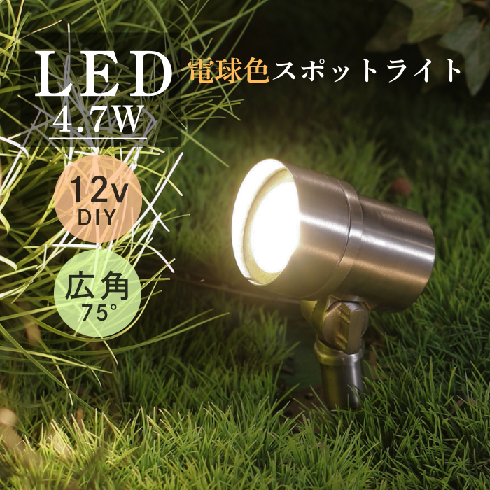 【SP-09-4】バークレー LEDガーデンライト 投光ライト スポットライト 4.7W 防雨型 3000K 280ルーメン シルバー色 アルミ製 屋外・庭用 照明 スパイク付属