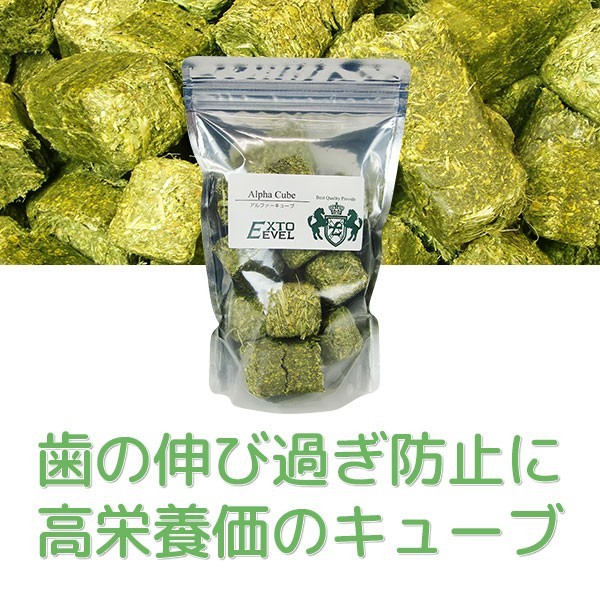 【商品名】 アルファキューブ 【メーカー】 EXTOLEVEL 【原産国】 アメリカ 【原材料】 アルファルファ 【対象動物】 うさぎ・ハムスター・モルモット 【商品説明】 高カルシウム・高タンパク質なアルファルファ牧草をギュッと圧縮しました。その噛み応えにより歯の伸びすぎを防止したり、ストレス解消に最も効果を発揮します。EXTOLEVELでは、色味が極端に違うものを省き品質がいい状態の物だけ商品にしています。