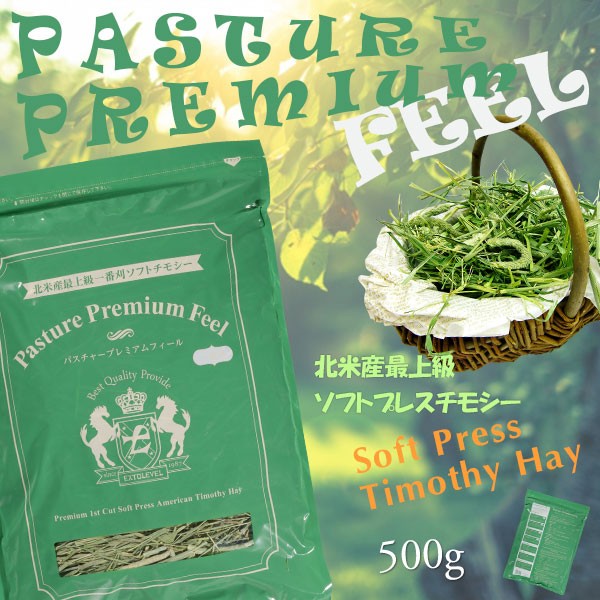 【商品名】 パスチャープレミアムフィール 【メーカー】 EXTOLEVEL 【原産国】 アメリカ 【原材料】 ソフトプレス1番刈チモシー 【対象動物】 うさぎ・モルモット 【商品説明】 シングルプレス1番刈チモシーヘイよりも圧縮された柔らかな1番刈チモシーヘイ。繊維質が豊富なイネ科の牧草。【主成分(平均値)】 粗たんぱく質:8.5%/粗脂肪:2.0%/粗繊維:33.0%/粗灰分:5.5%/カルシウム:0.35%【内容量】 500g