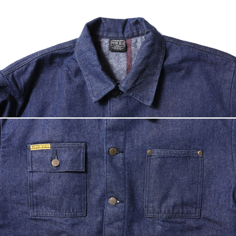 | 商品説明 | アメリカのオレゴン州ペンドルトンの刑務所で受刑者により生産されているブランド『プリズンブルース』のブランケットライナー付きのカバーオール。生地は14.75オンスのヘビーデニムを使用したタフな一着で、フロントにはワークテイストを感じさせる大きなパッチポケットがデザインされている。右胸のポケットには『PRISON BLUES』のネームがデザインされており、ちょっとしたアクセントに。使用されているボタンやリベットにもブランドネームが刻印された細部までこだわりを感じるディティールでアメリカらしいルーズなシルエットはワークシーンだけでなくストリートシーンでも活躍してくれる。 |