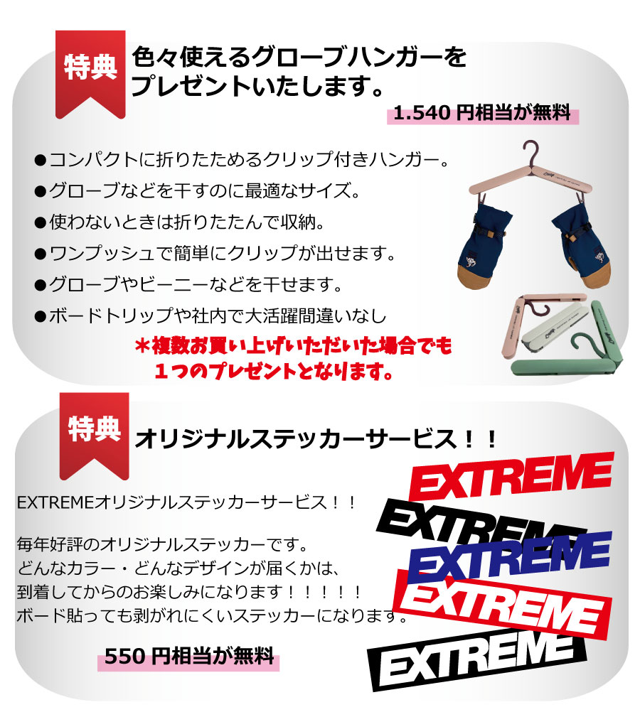 | *特典は数量限定になります。表記されていても急に終了する場合もございます。予めご了承ください。 *商品・カタログ・ブランドホームページの画像を使用しております。画像の種類・ご覧の環境により実物とカラーが多少異なって見える場合がございます。 *当店は、実店舗とネットショップの計3店舗で在庫を共有しております。 当店より御注文確定のご連絡をお送りさせて頂くまでは、御注文確定ではございません。 買い物カゴに商品を入れられる状態でもタイミングによっては在庫が完売の場合がございます。 その場合は、メーカーに在庫を確認させて頂きお取り寄せさせて頂きます。 メーカーにも在庫がない場合はご注文をキャンセルとさせて頂きます。 *何かご質問等ございましたら、メール・電話にてお気軽に御問い合わせください。 スノーボード |