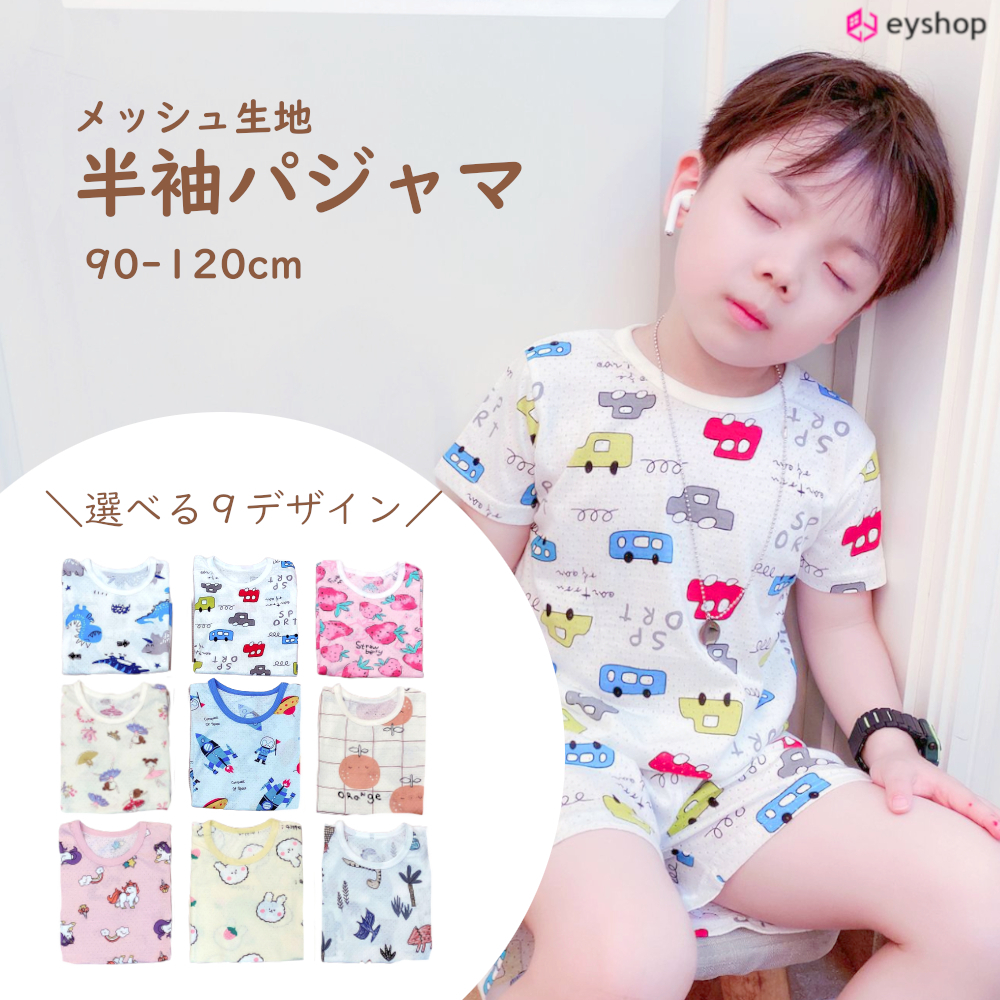 パジャマ キッズ 半袖 メッシュ ルームウェア 上下セット セットアップ 女の子 男の子 子供 夏 90 100 110 120