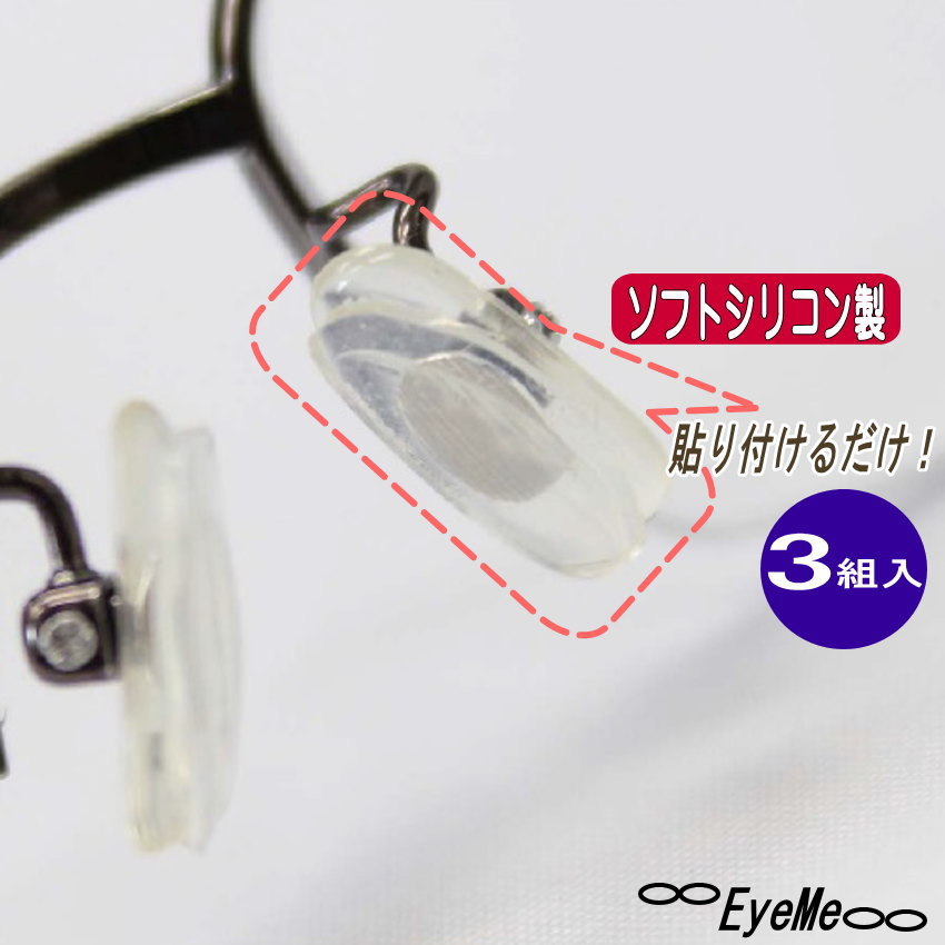 鼻ぴたソフト(3組入り)ソフトシリコン鼻パッド 定形外郵便送料無料 アレルギーフリー メガネのずれ落ち防止<br>