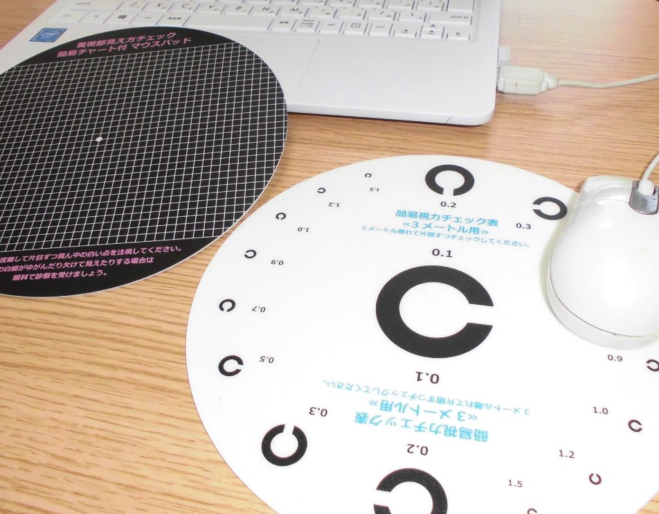 薄型マウスパッドが視力の簡易チェックツールとなりました。