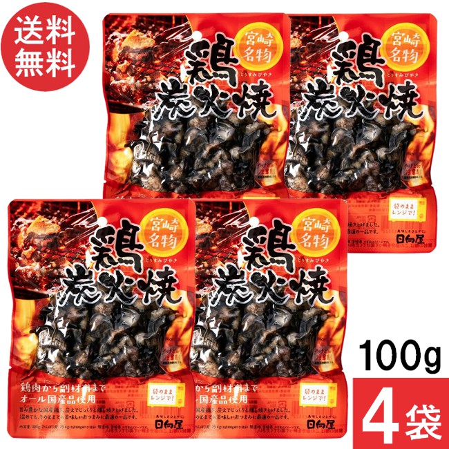 宮崎名物 日向屋 鶏炭火焼 100g 4袋 国産 無添加 焼き鳥 焼鳥 やきとり