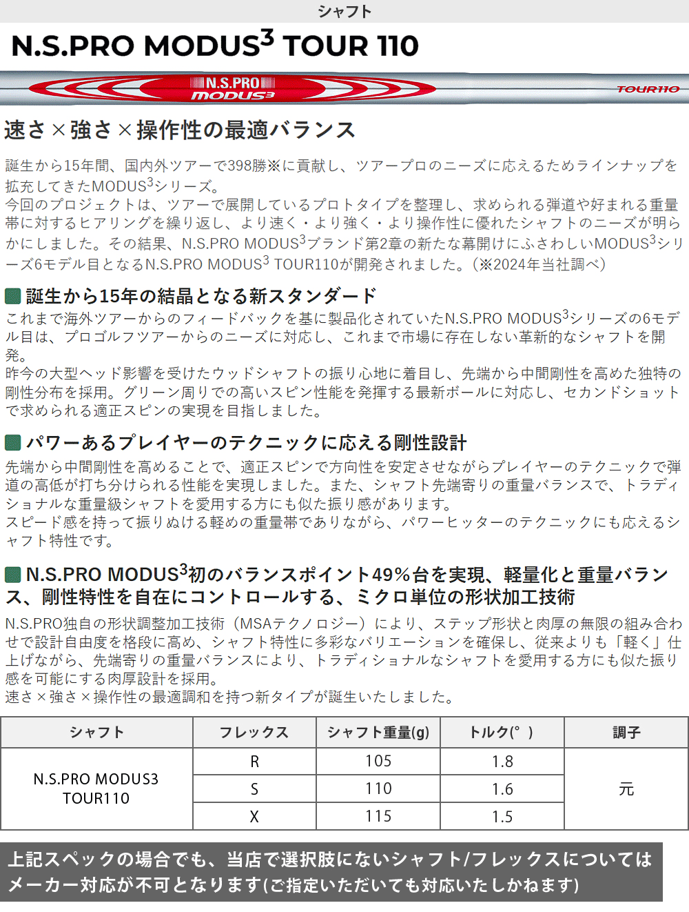 | ※長さを変更することで、バランスが変わります ※ロフト角・ライ角は±1.5°の変更が可能です。 | ||||||