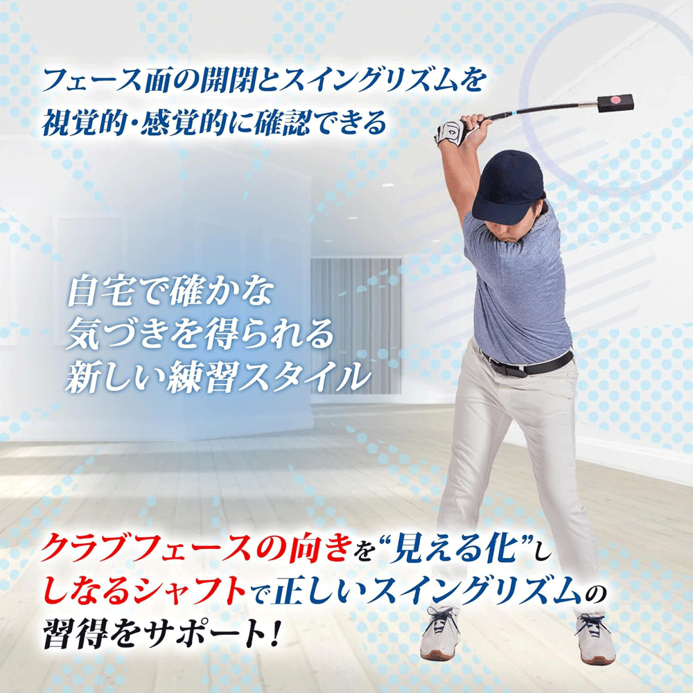 しなるシャフトでリズムとヘッドの走りを再現スイング時にシャフトがしなる構造により、クラブヘッドの走りやリズムのズレを自然に体で感じ取ることができます。これにより、手打ち防止に効果を発揮。感覚的な練習では得られにくい理想のスイングを体感として身につけることが可能です。
