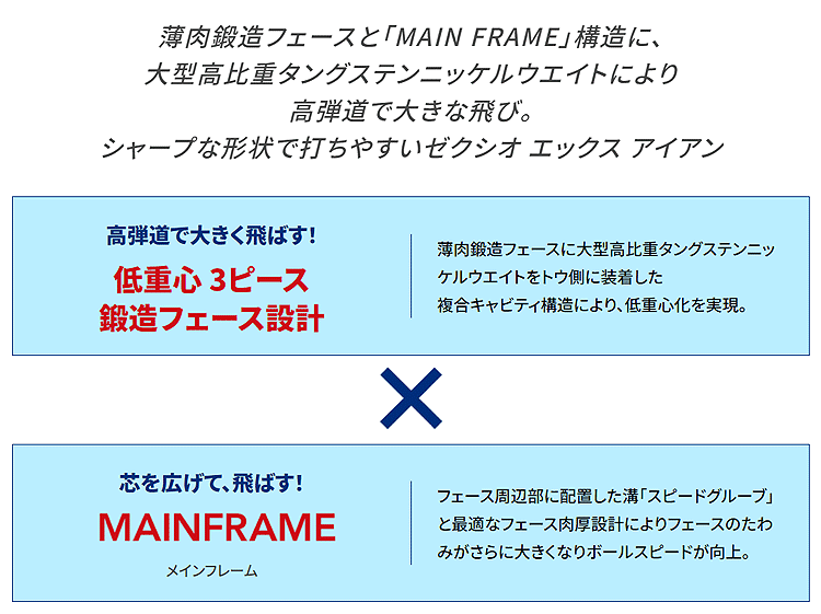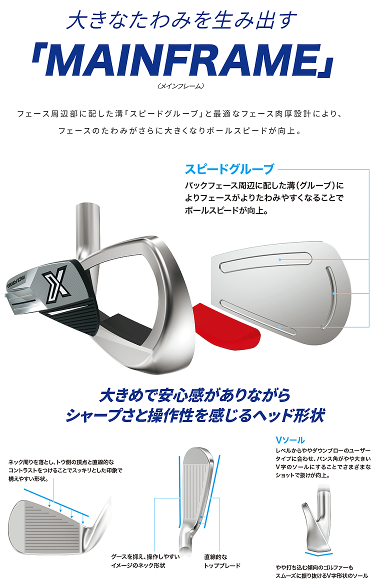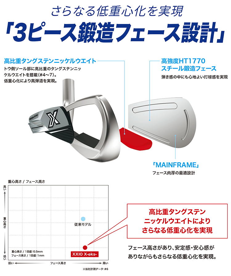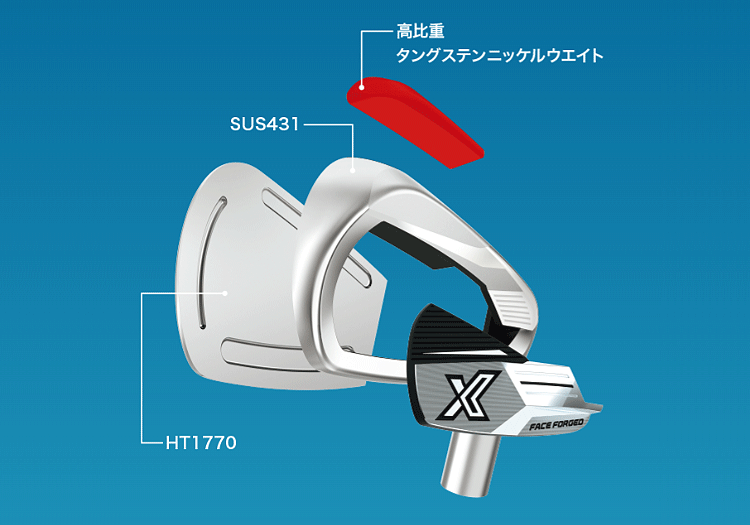 | ヘッド素材 | フェース:HT1770 (#4〜7)ボディ:SUS431+高比重タングステンニッケルウエイト (#8〜SW)ボディ:SUS431 | ||||||||