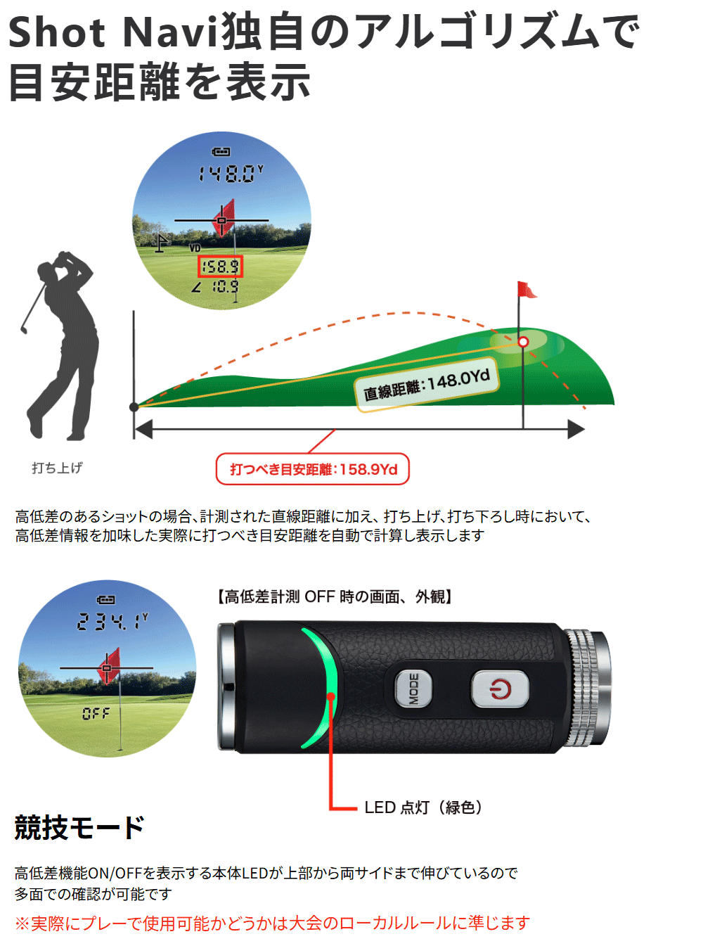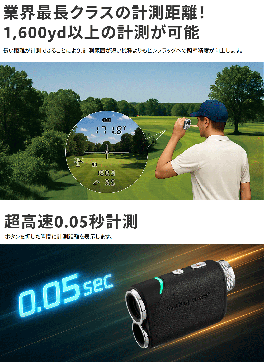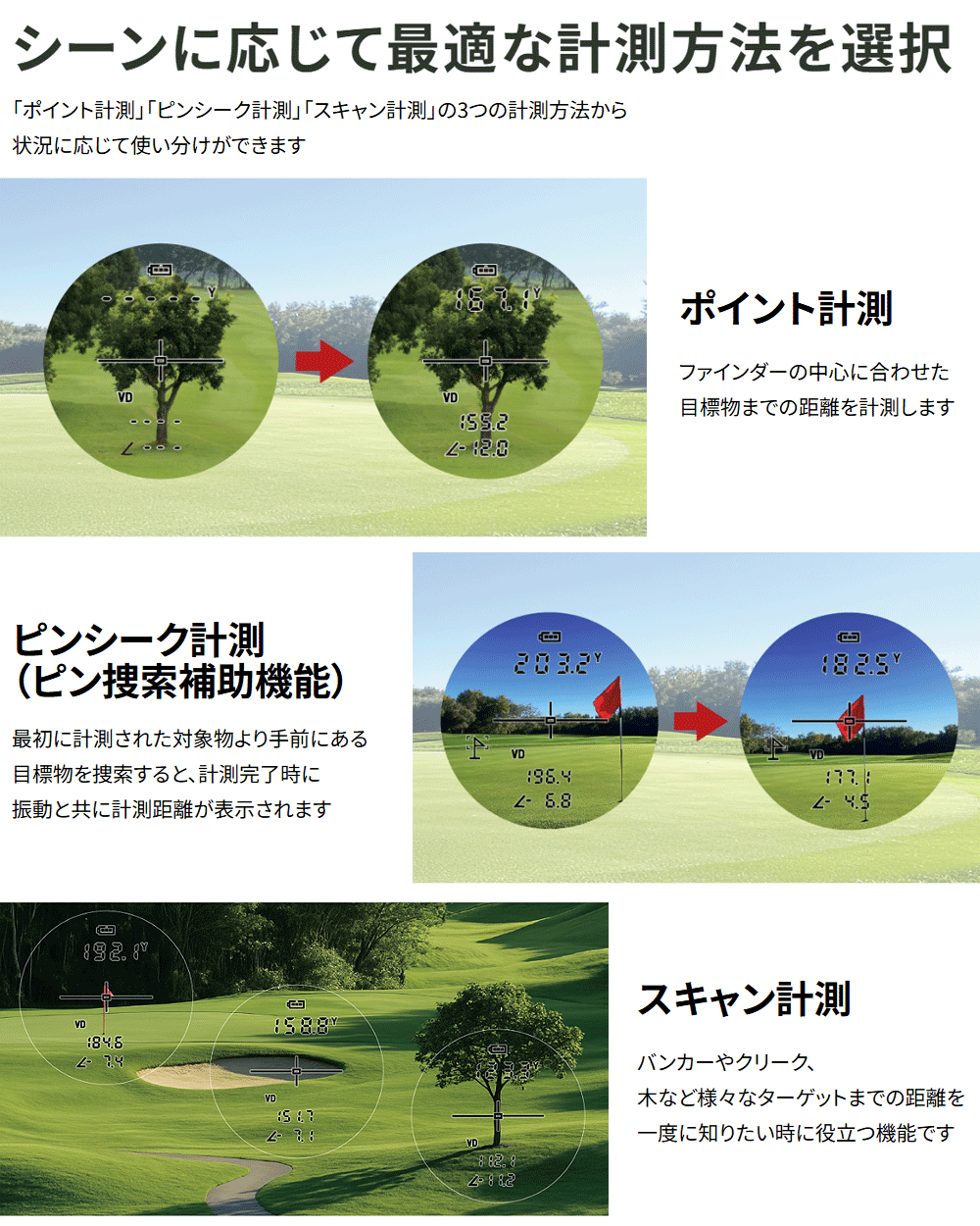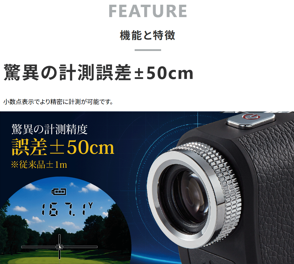 | 測定範囲 | 3.3〜1,640y(3〜1,500m) |