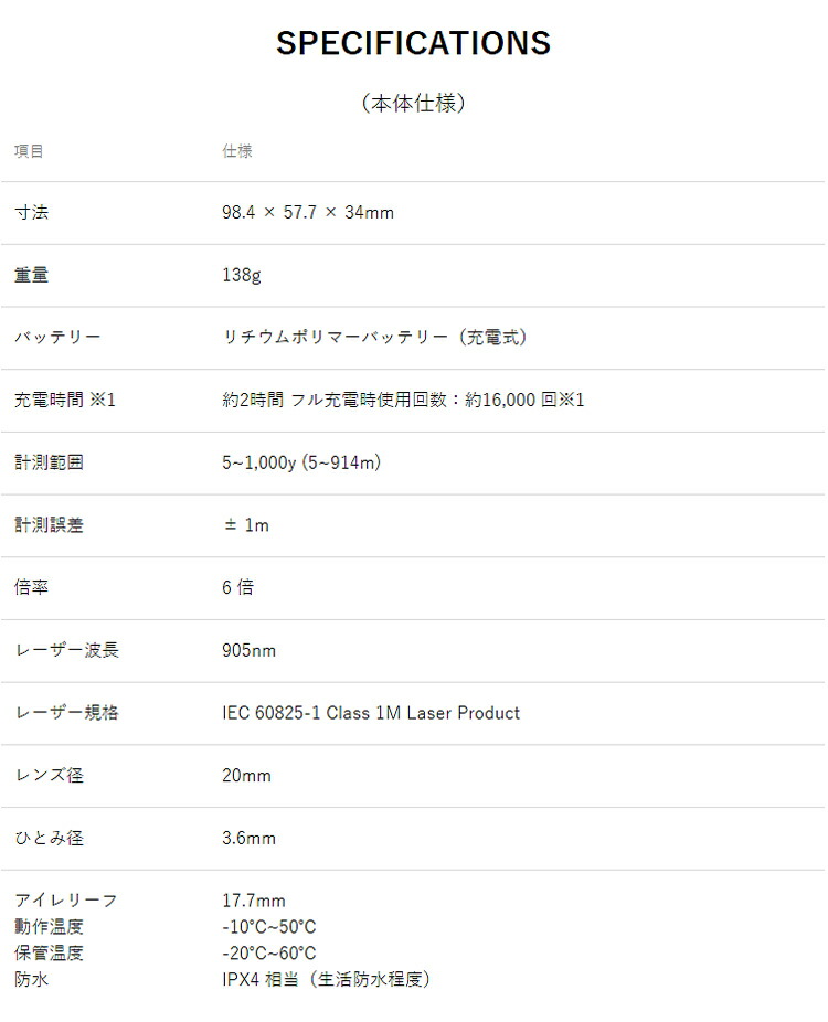 | 計測範囲 | 5〜1,000y (5〜914m) |