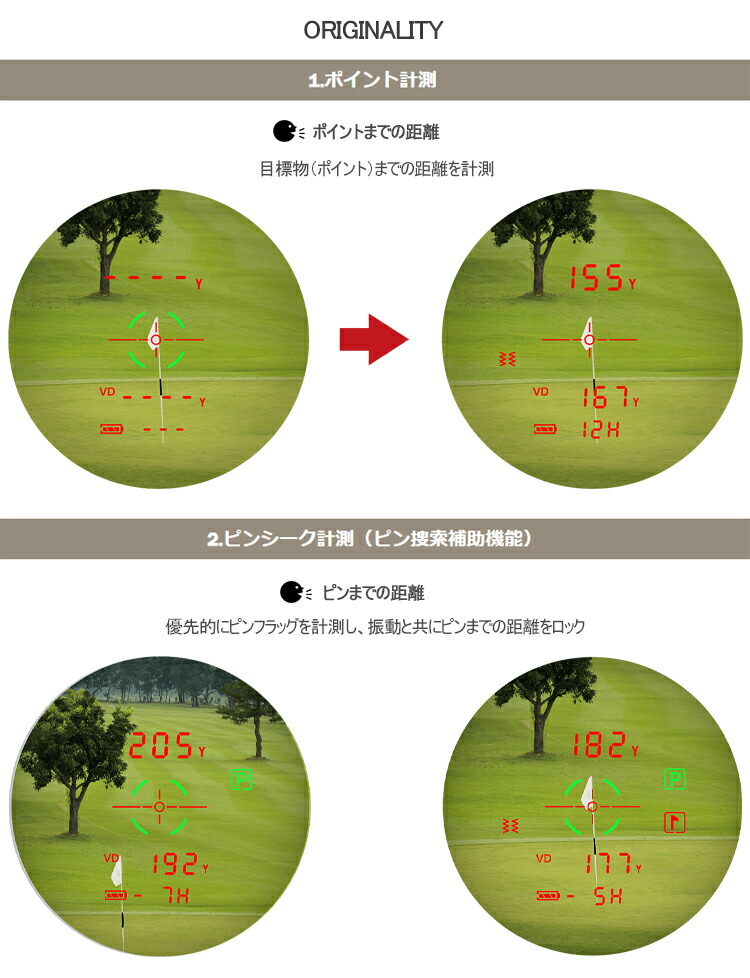 ピンフラッグに照準を合わせにくい時、最初に計測された対象物より手前にあるものを捜索する。