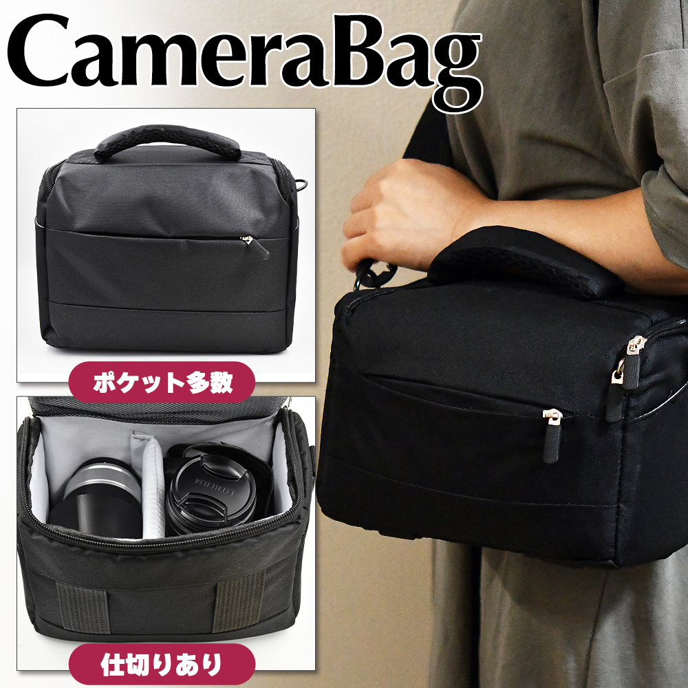 カメラバッグ コンパクト 軽い ブラック 仕切りあり 衝撃吸収 一眼レフ ミラーレス レンズ収納 腰付可 疲れにくい ショルダータイプ 黒