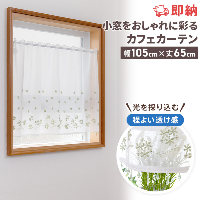 即納 カフェカーテン 非遮光 洗える 花柄 刺繍 レース おしゃれ かわいい つっぱり棒 突っ張り棒 小窓 出窓 キッチン 目隠し ウォッシャブル 既製品 カーテン