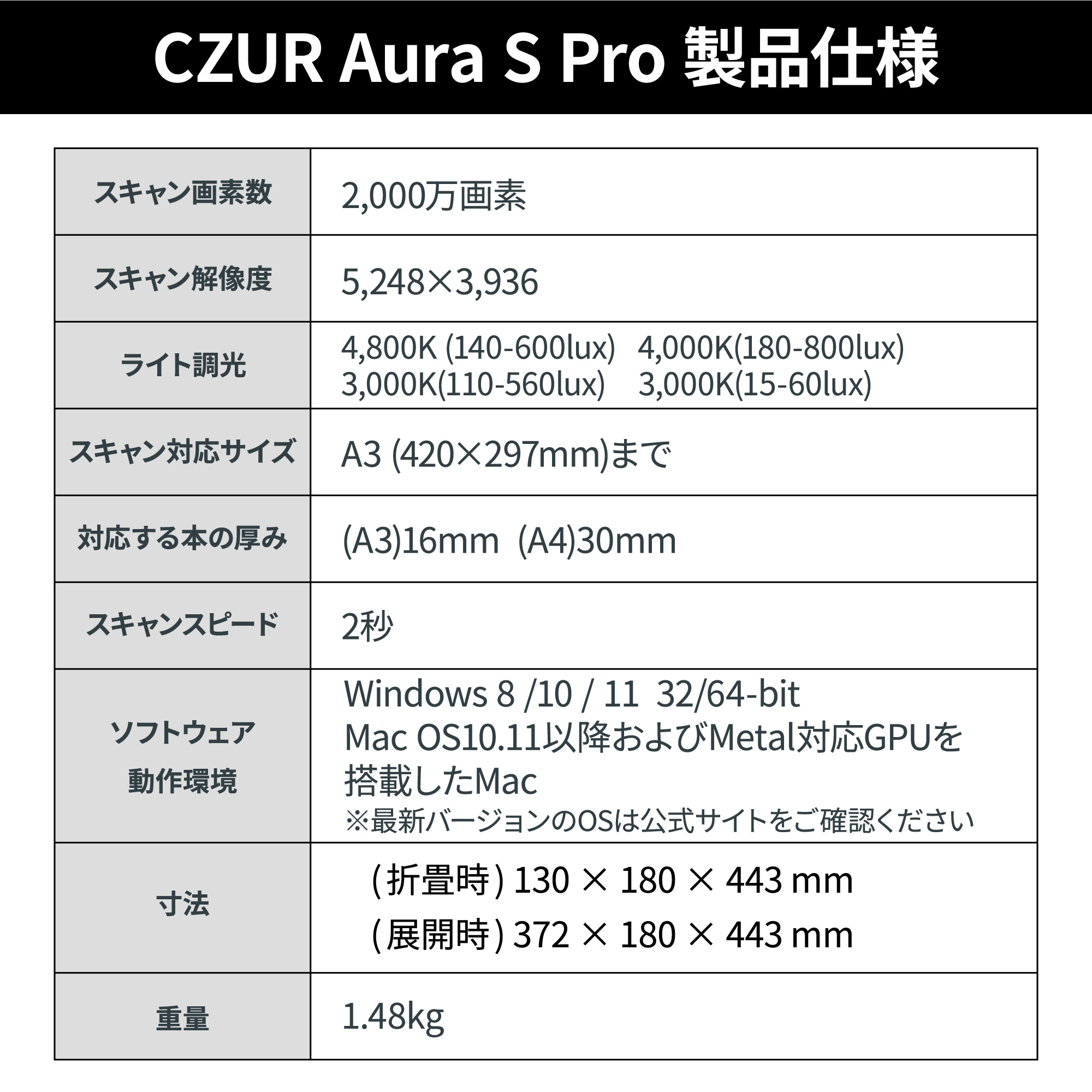 【正規販売店】CZUR Aura S Pro ドキュメントスキャナー 非破壊 非裁断 ブックスキャナ オーバーヘッド 高解像度 データ化 書籍 OCR機能 LED 折りたたみ 爆買