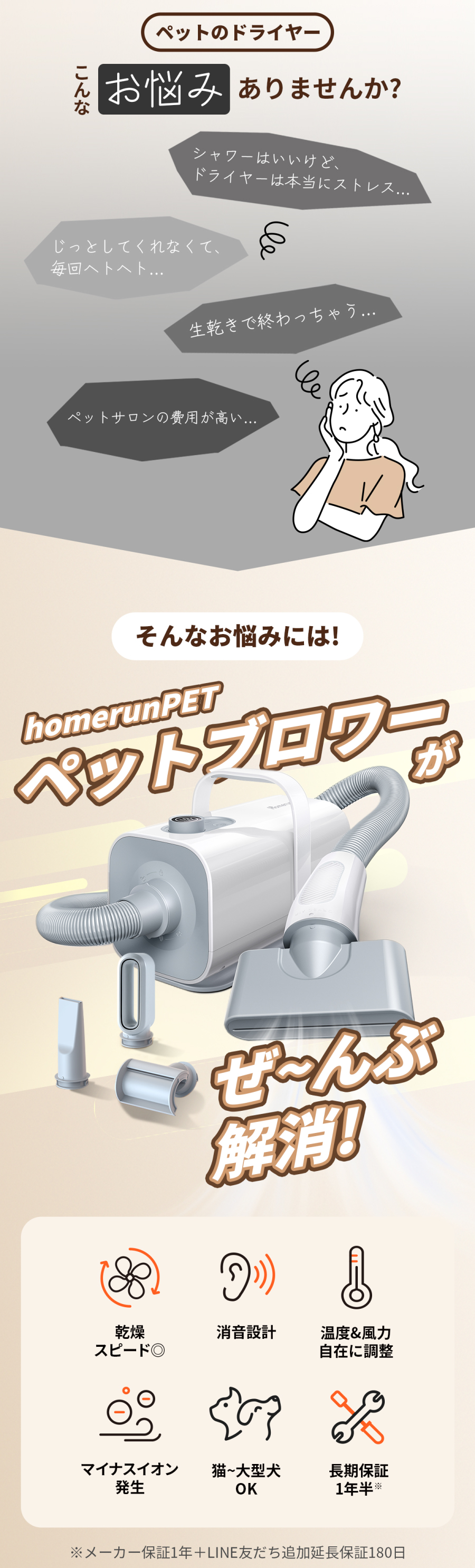 ペットブロワー ホームランペット 大型犬 中型犬 小型犬 猫 homerunPET ペットドライヤー 業務用 大風量 速乾 静音 マイナスイオン ペットサロン 時短 初心者