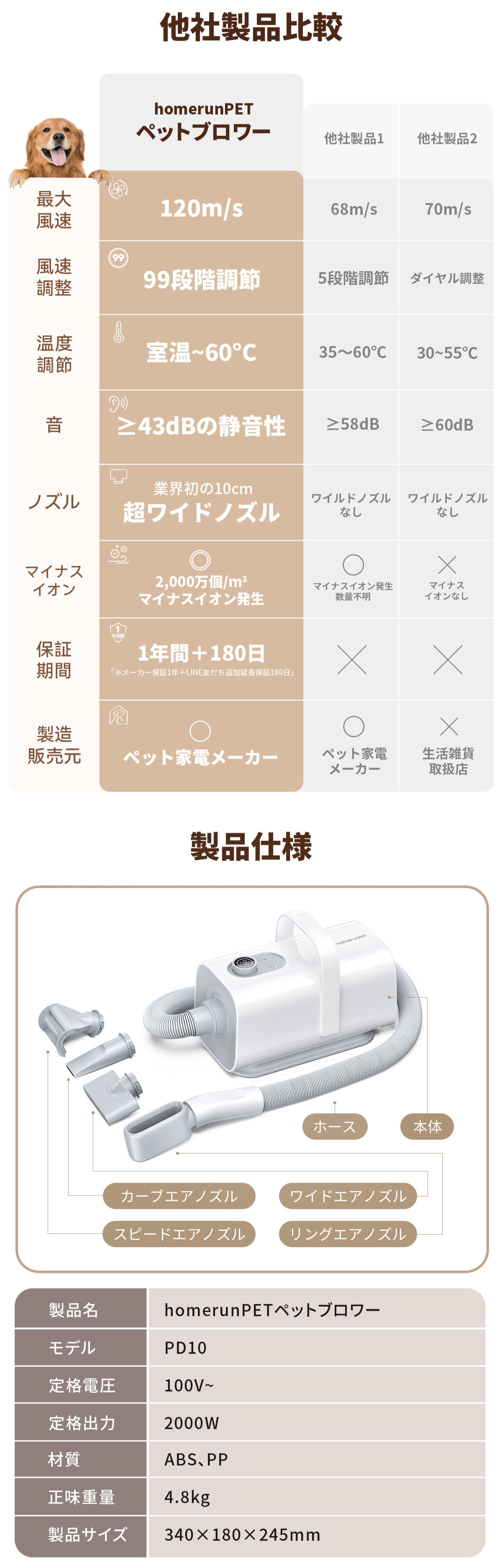 Homerunpet ペットブロワー 詳細スペック